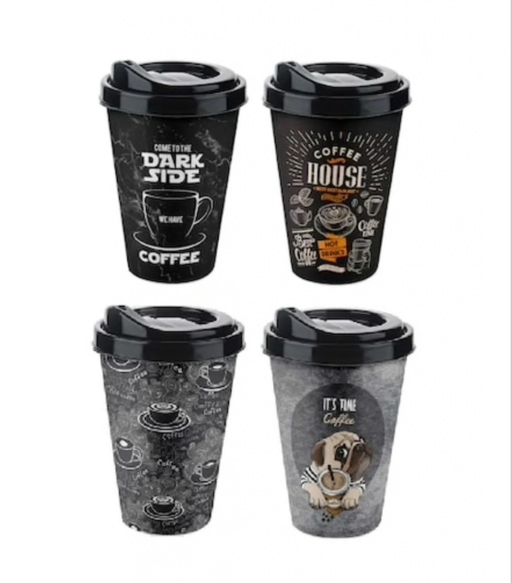 1 Adet Kahve Bardağı - Kapaklı Desenli