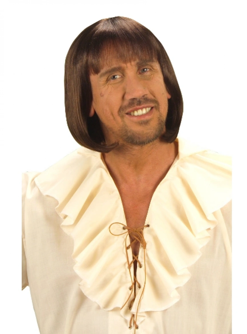 Yetişkinler için bu ortaçağ peruğu kahve renktedir.