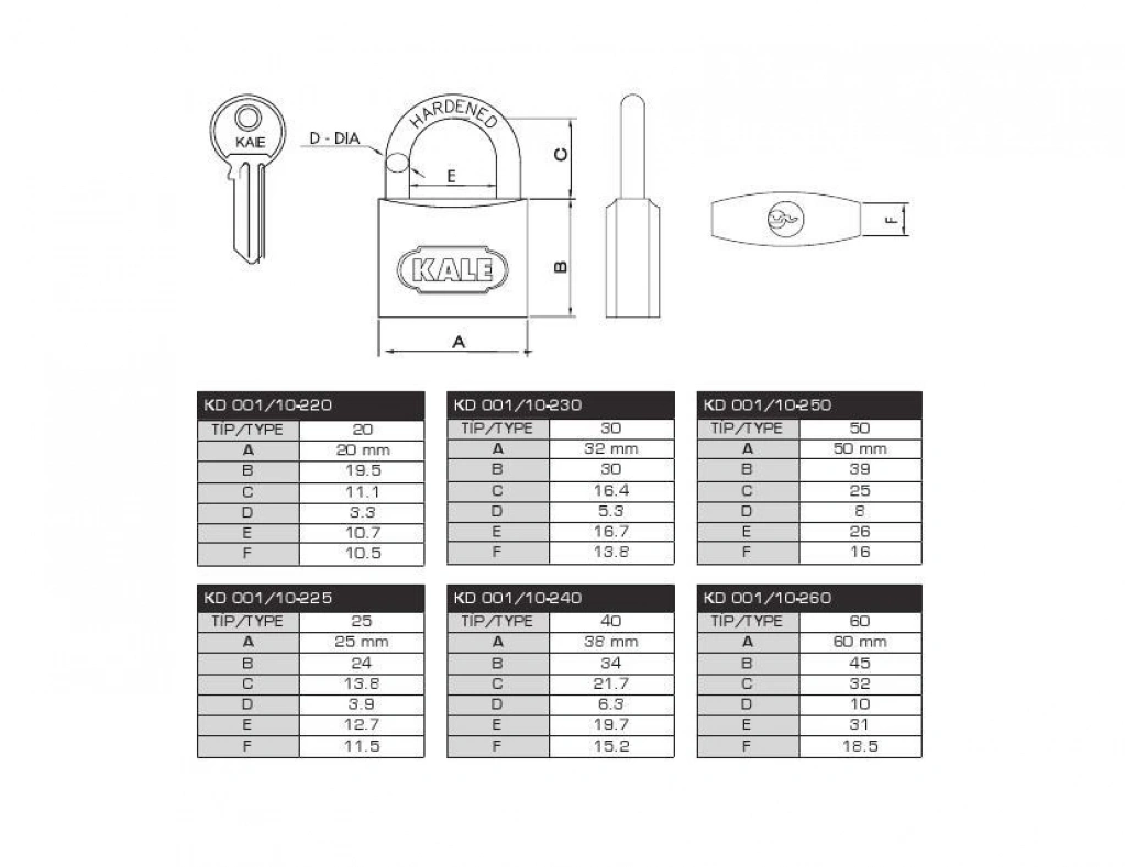 Kale 20 mm Sarı Pirinç Asma Kilit KD-001/10-220