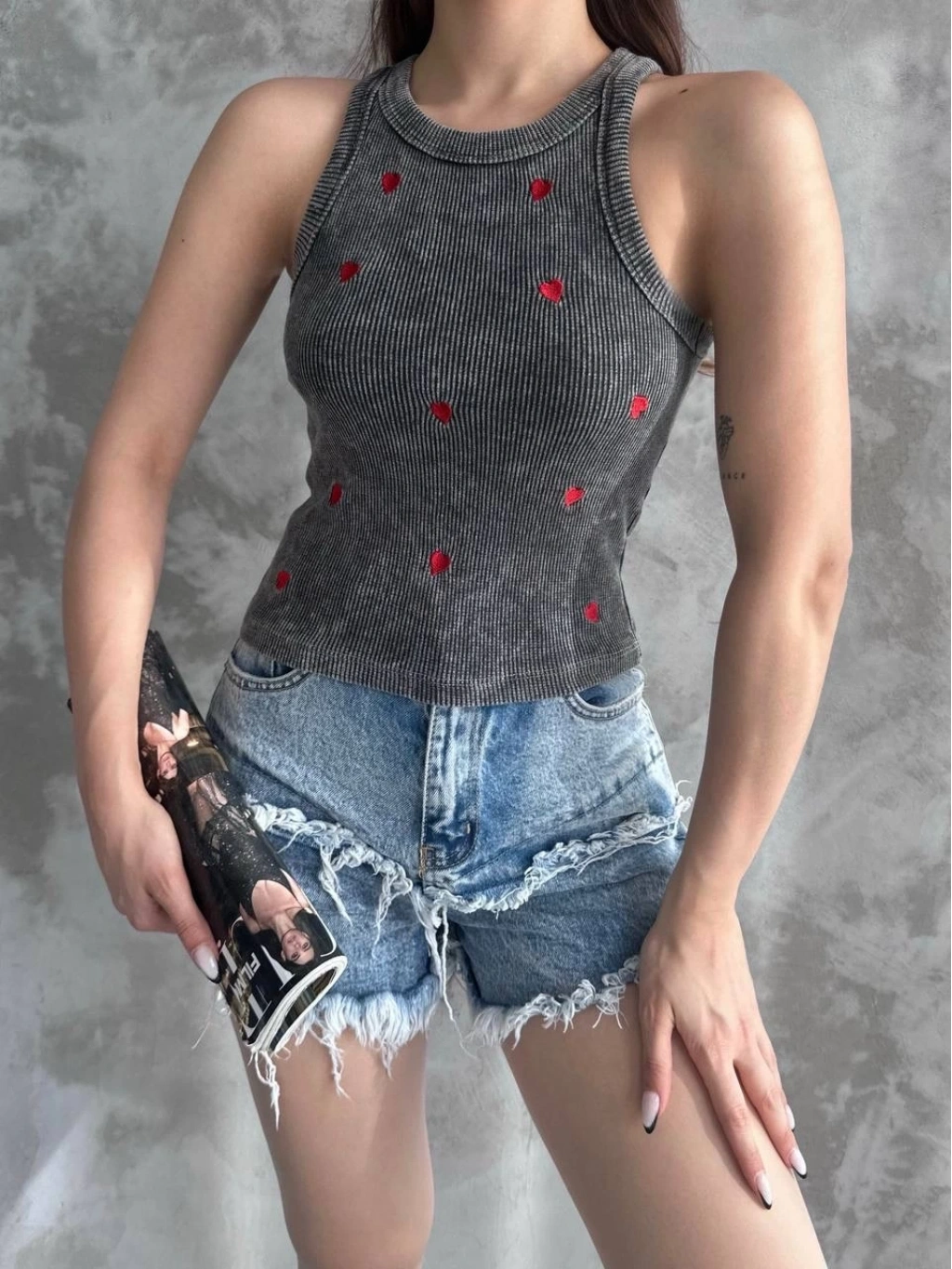 Kalp nakışlı bluz