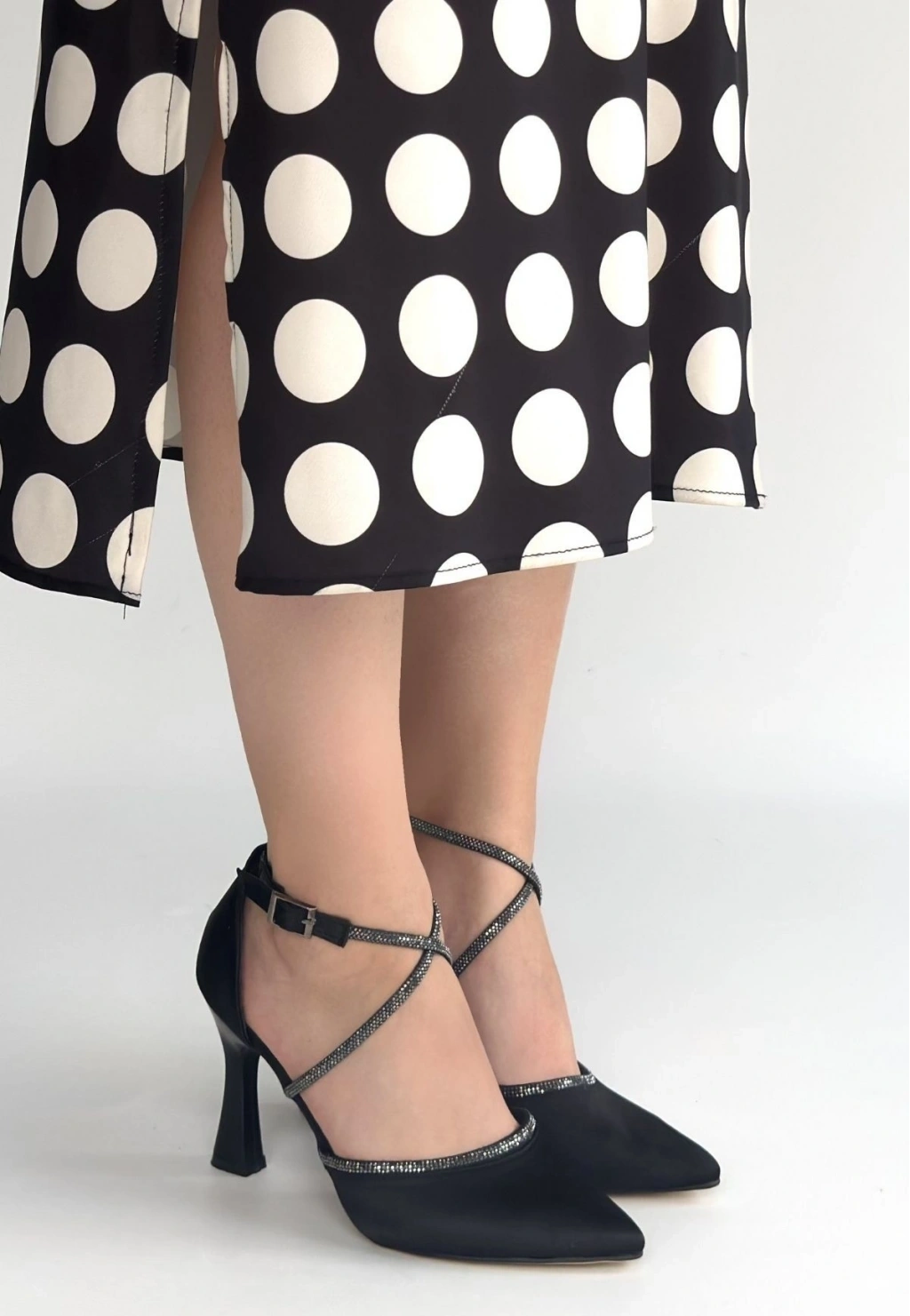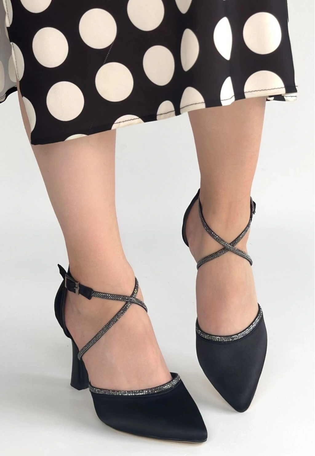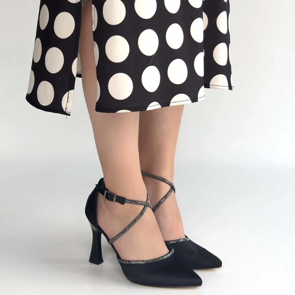 • Kanji Siyah Saten Topuklu Ayakkabı