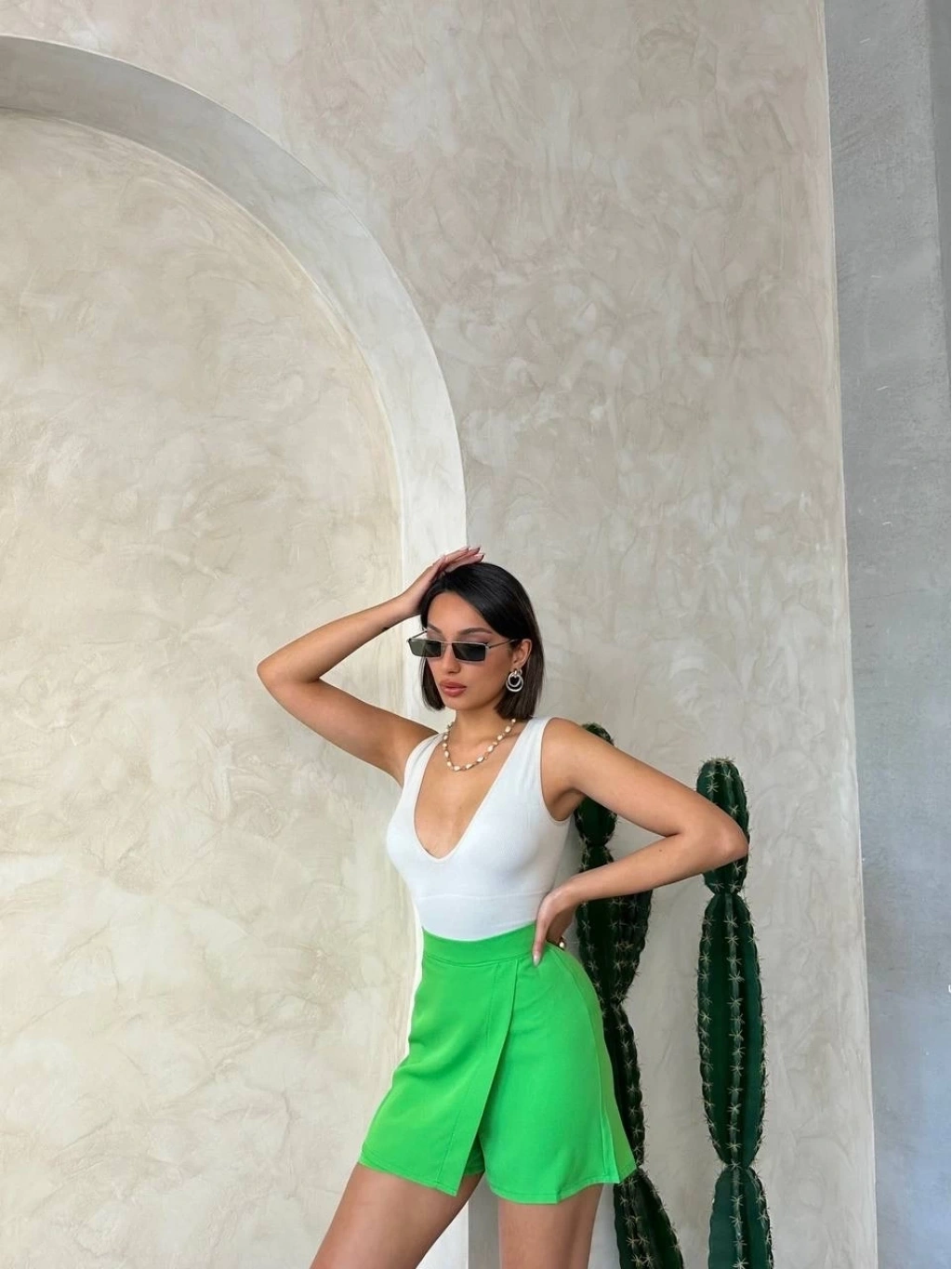• Kapaklı şort etek yeşil s24901