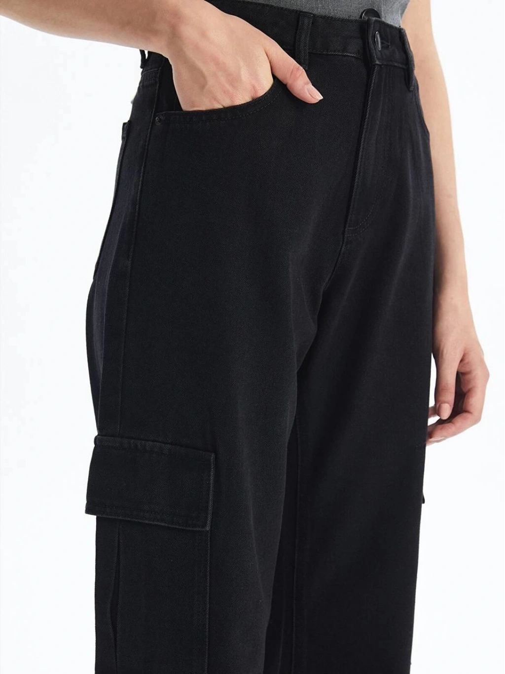 Kargo cep detaylarıyla şıklığı bir araya getiren Siyah Kadın Jeans Pantolon, tarzınızı yansıtacak vazgeçilmez bir parça olmaya aday!