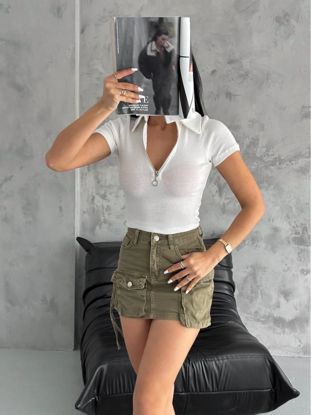 • Gece şıklığınızı tamamlayacak Kaşkorse Yaka Fermuarlı Bluz Beyaz!
