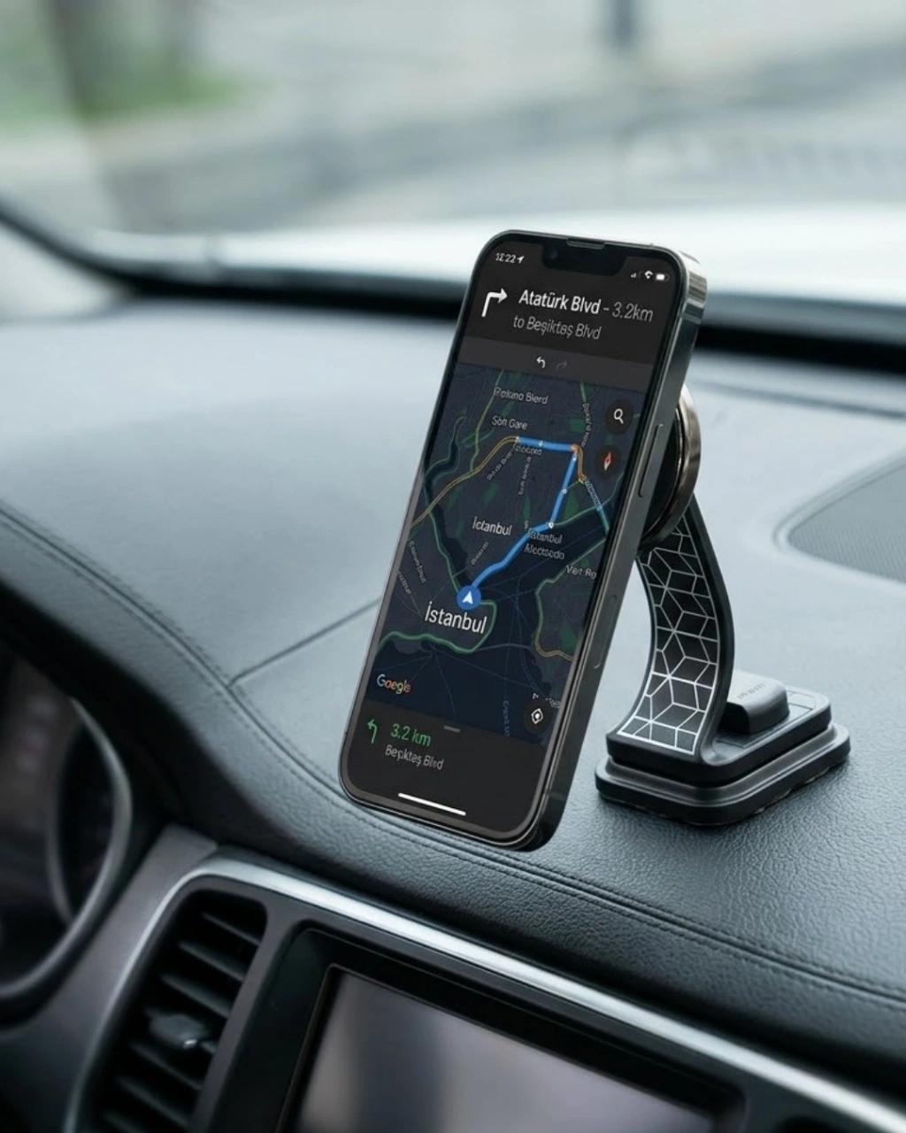 Manyetik araç telefon tutucu, sürüş sırasında telefonunuzu güvenli ve sabit bir şekilde kullanabilmeniz için tasarlanmış pratik bir araç aksesuarıdır. Dayanıklı malzemeden üretilmiş yapısı sayesinde uzun ömürlü kullanım sunar ve araç içerisinde sağlam bir tutuş sağlar.Güçlü mıknatıs sistemi sayesinde telefonunuzu kolayca tutucuya yerleştirebilir ve sabit şekilde kullanabilirsiniz. Bu özellik özellikle navigasyon kullanımında büyük kolaylık sağlar.360 derece dönebilen başlık mekanizması sayesinde telefonunuzu istediğiniz açıya ayarlayabilir ve sürüş sırasında en uygun görüş açısını elde edebilirsiniz.Katlanabilir ve kompakt tasarımı sayesinde kullanılmadığında kolayca katlanarak araç içinde yer kaplamaz.