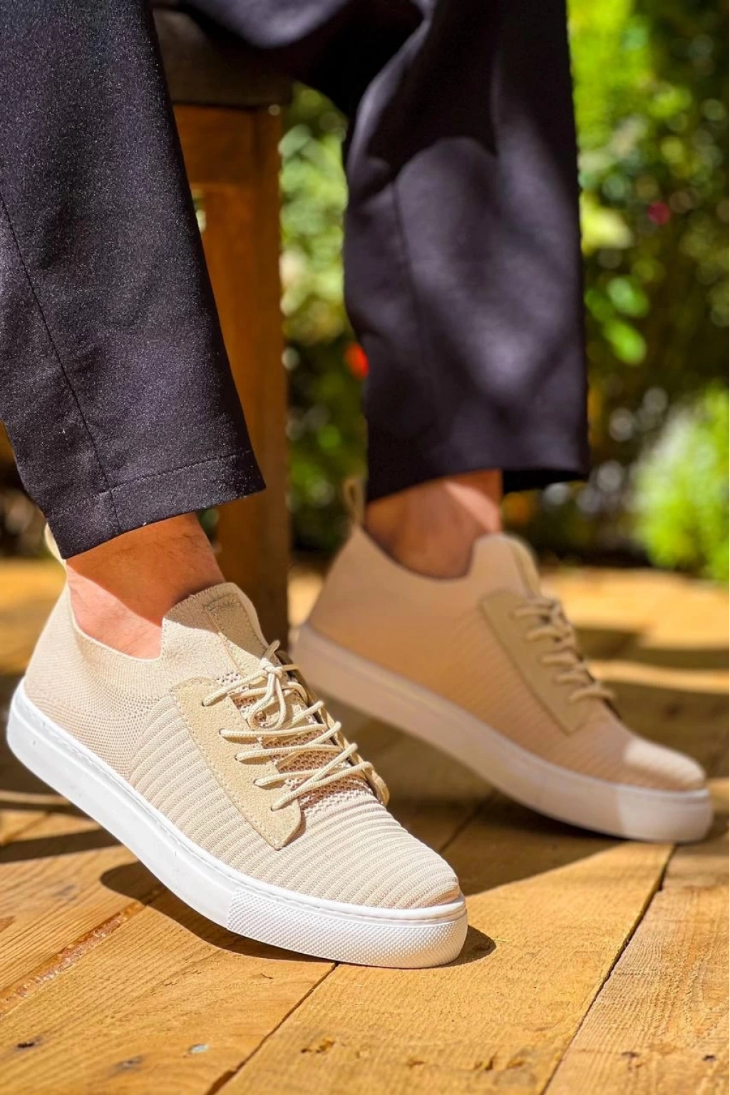 • KB-110 Kuback Bej Triko Yüksek Taban Bağcıklı Günlük Erkek Ayakkabı