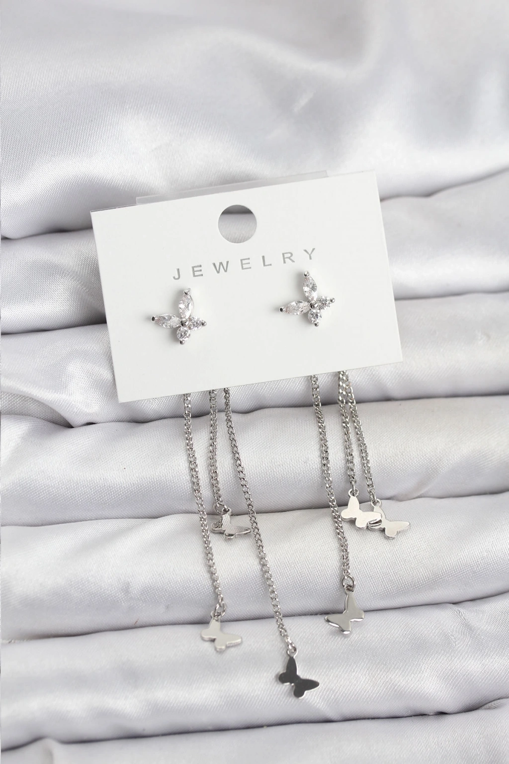 Kelebek Model Gümüş Renk Pirinç Sallantılı Kadın Küpe
