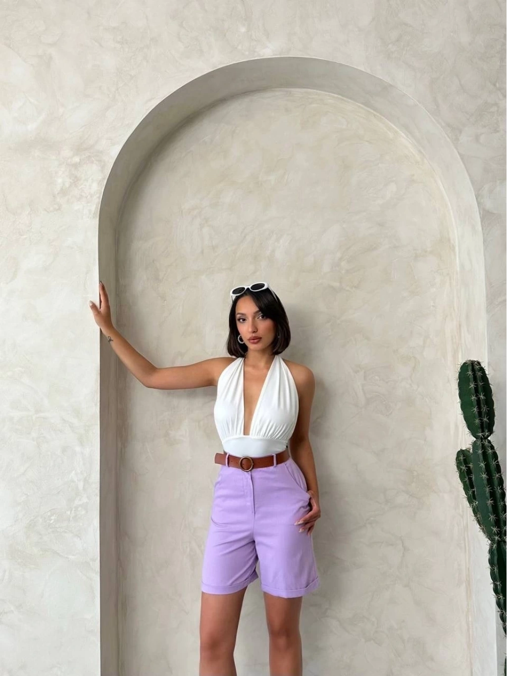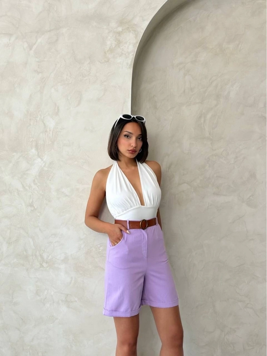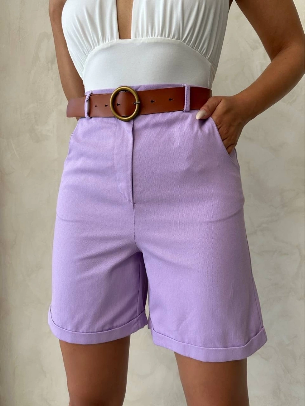 Bu lila renkli kemerli gabardin şort, yaz aylarının vazgeçilmez parçası olmaya aday! Şıklığı ve rahatlığı bir arada sunan şort, gardırobunuzun favori parçalarından biri olmaya aday.