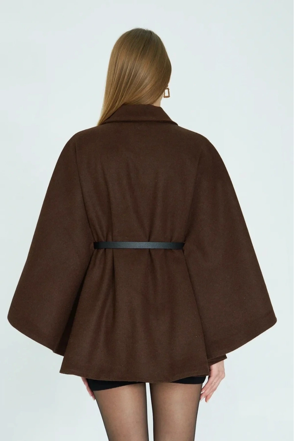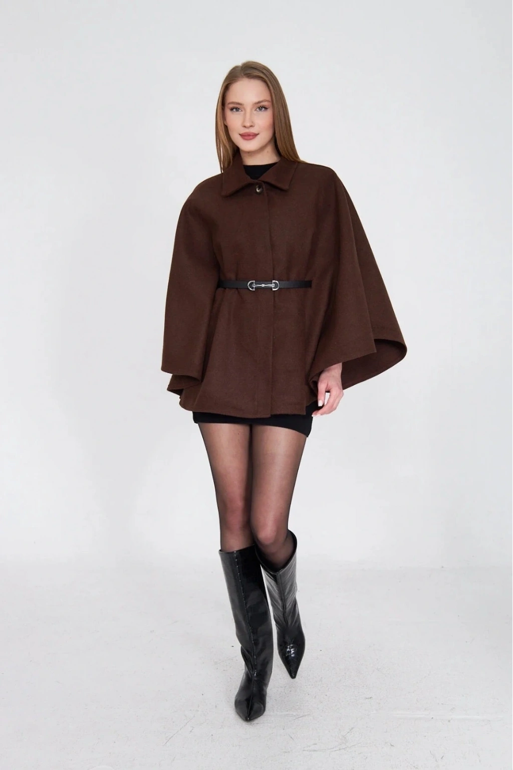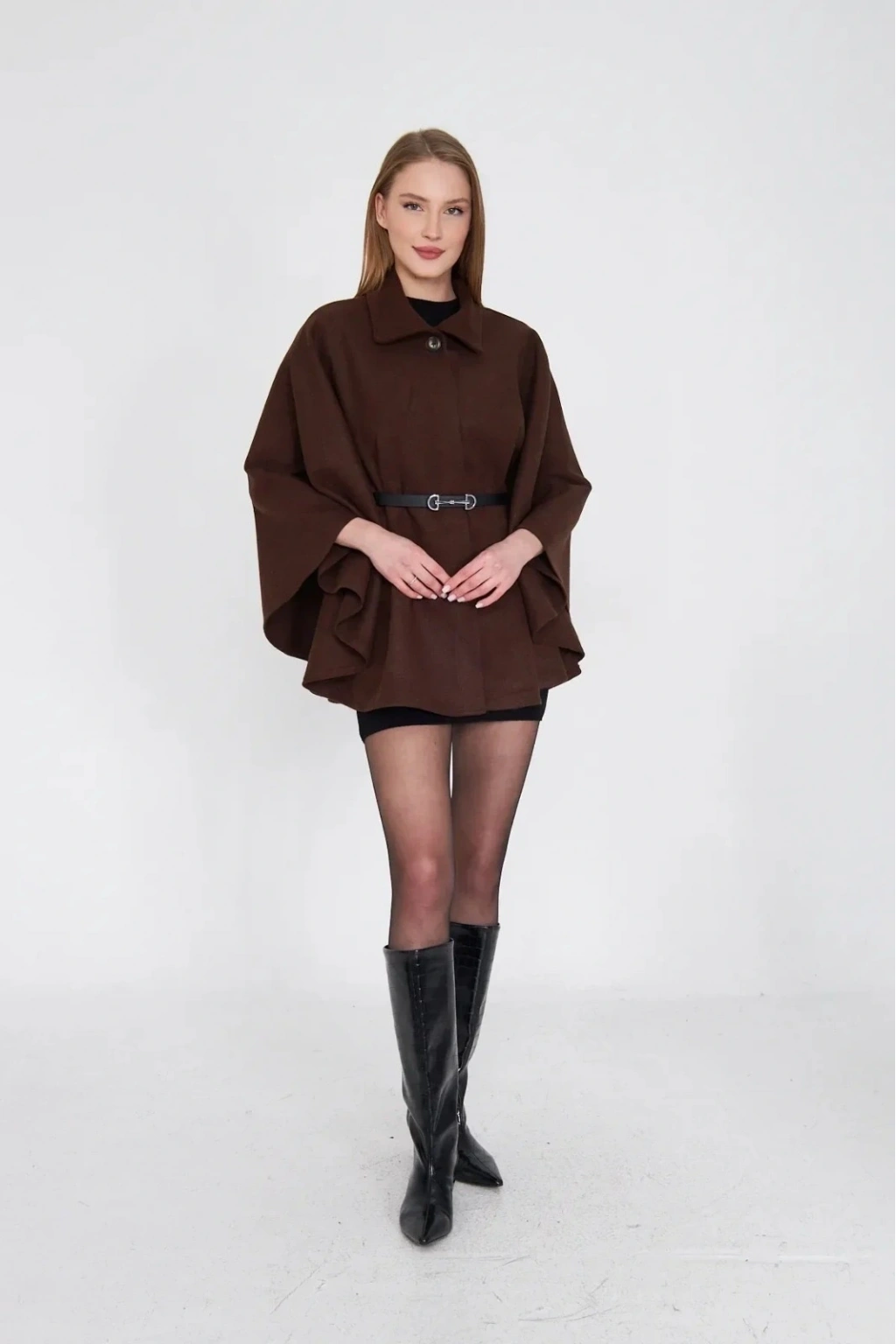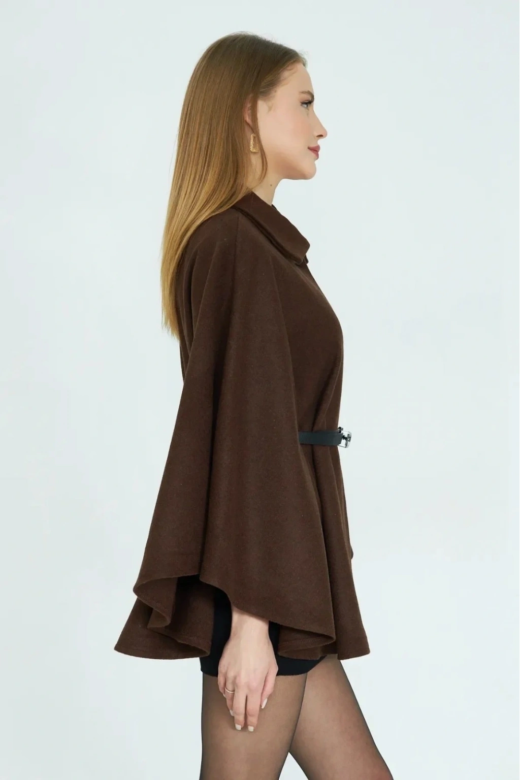 • Kemerli kaşe panço kahve pt