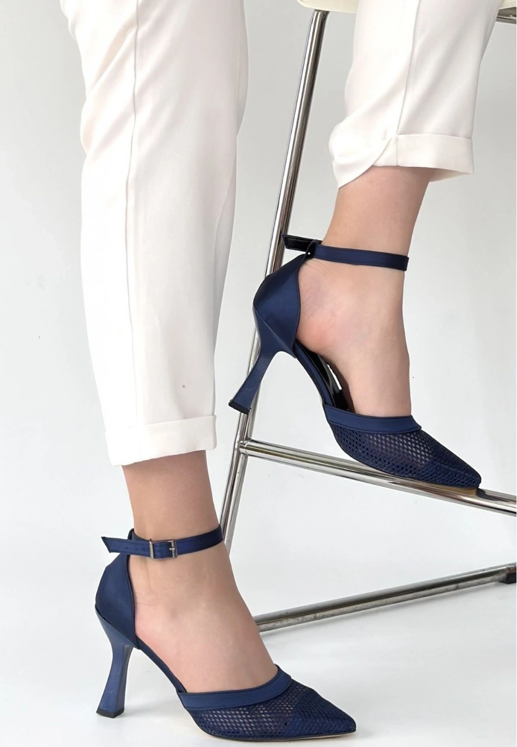 • Keny Lacivert Saten Topuklu Ayakkabı