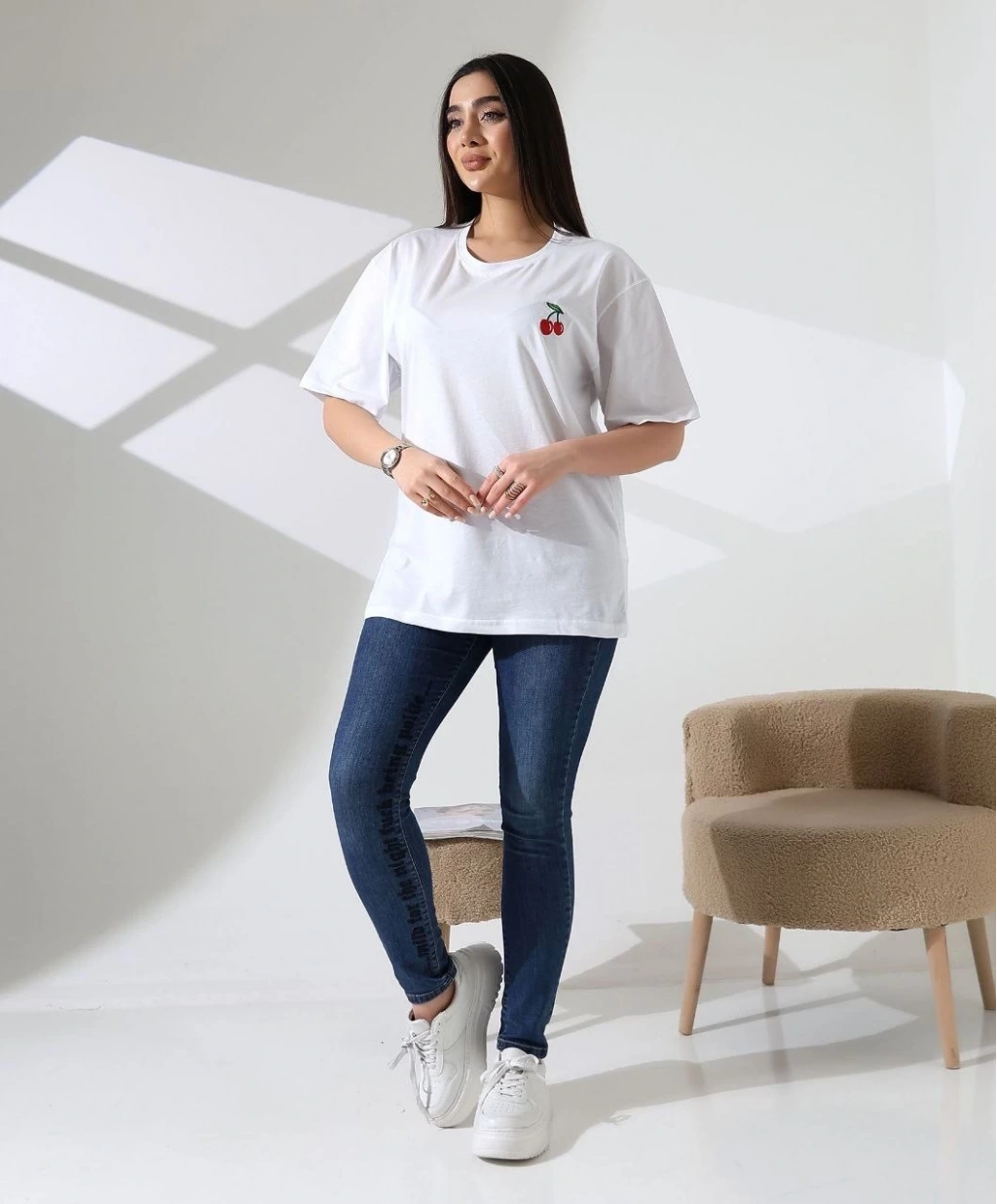 Şimdi KAZAX kiraz işlemeli tişört ile gardırobunuzu renklendirin!