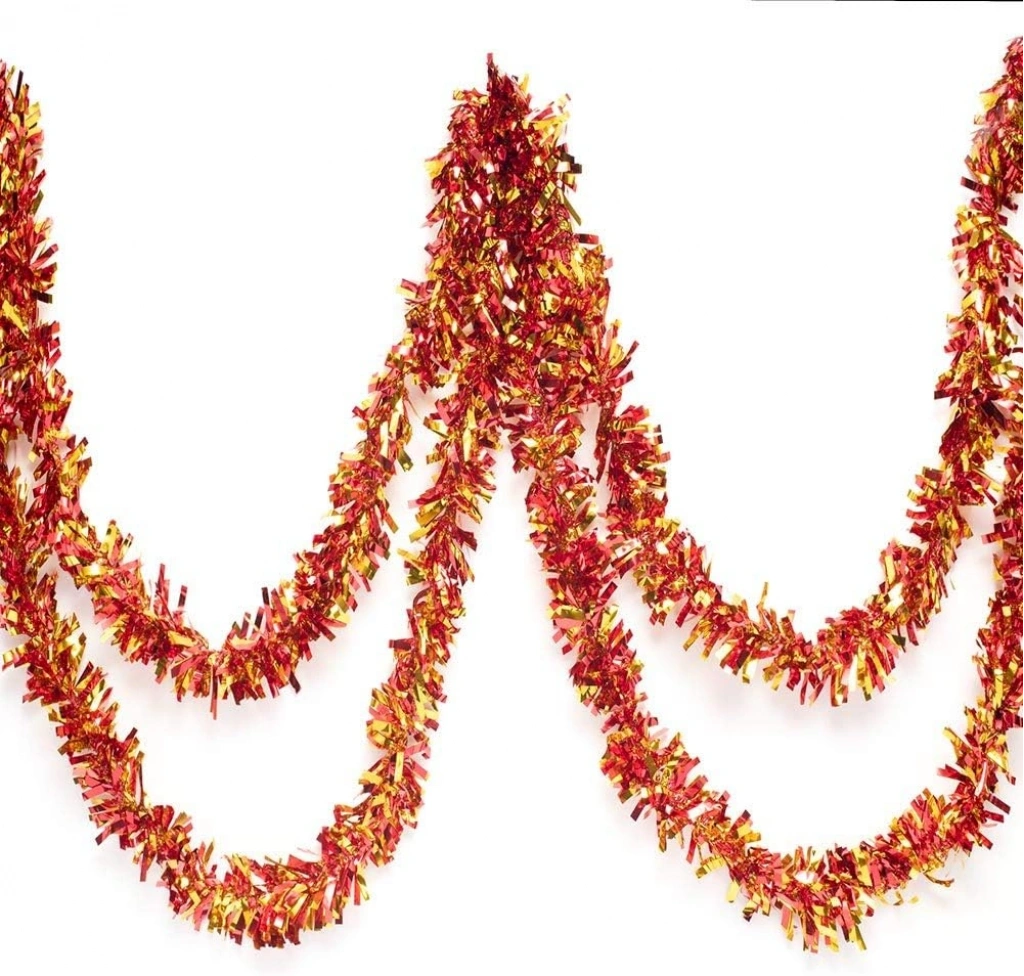 Kırmızı Altın Renk 4 cm Genişlik Garland Çift Renk Sim Süs 180 cm