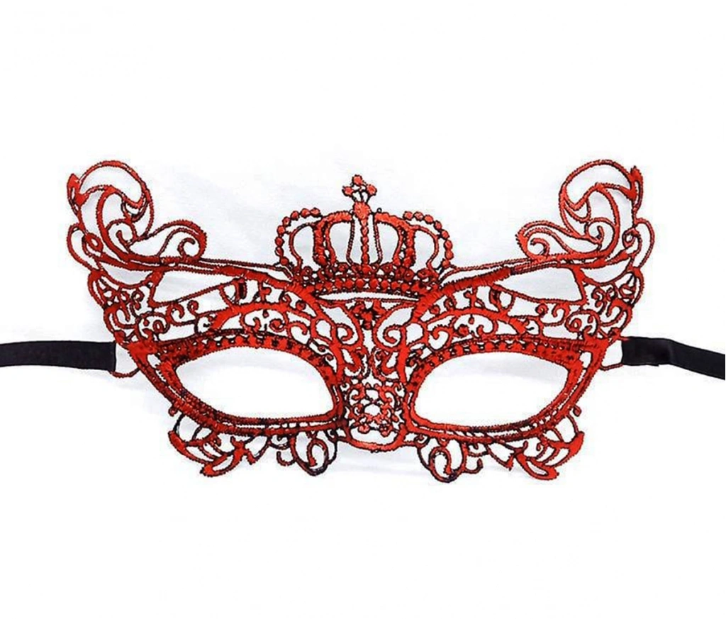 Kırmızı Renk Dantel Örgü İşlemeli Parti Maskesi Model 2
