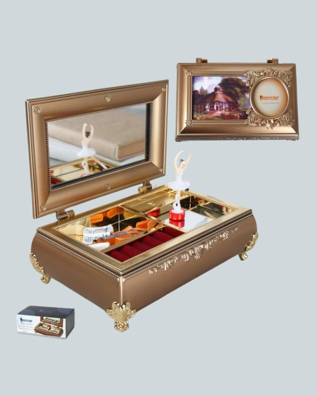Balerinli müzikli takı kutusu, zarif ve ince detaylarla tasarlanmış dekoratif bir kutu arayan kullanıcılar için harika bir tercihtir. Piyano görünümü ve fırın boya kaplaması sayesinde uzun yıllar boyunca kalitesini koruyan dayanıklı bir yapıya sahiptir. Ürün, nostaljik ve modern çizgileri bir araya getirerek hem çocuk odaları hem yetişkin yaşam alanları için ideal bir dekoratif obje sunar.Kutu açıldığında karşınıza çıkan balerin figürü, müzik eşliğinde sergilediği görüntüyle oldukça etkileyicidir. Melodi, ürüne romantik bir hava katar ve izleyen kişiye sakinlik verir. Bu görüntü, özellikle çocukların ilgisini çekerek ürünü hem eğlenceli hem masalsı bir aksesuar haline getirir.Kutu içinde yer alan bölmeler, takıların düzenli bir şekilde saklanmasını sağlar. Bu bölmeler; yüzük, kolye, küpe, bileklik gibi ufak aksesuarların kaybolmasını engeller ve her şeyin düzenli şekilde bir arada durmasını mümkün kılar.Hediye olarak verilmek istendiğinde her yaşa hitap edebilen çok yönlü bir tercihtir. Bale, müzik veya klasik dekor ürünlerine ilgi duyan herkes için anlamlı bir armağan niteliği taşır. Kız çocukları için özel günlerde kalıcı bir anı bırakır, yetişkin kullanıcılar için ise nostaljik bir süs eşyası olur.Piyano formundaki detaylı tasarım, ürünü vitrinlerde, makyaj masalarında ve çalışma alanlarında göz alıcı bir dekoratif obje haline getirir. Kutu içindeki küçük takı bölmeleri ise kullanıcıya hem estetik hem işlevsel bir çözüm sunar.Balerinli müzikli takı kutusu; romantik atmosferi, kaliteli yüzey yapısı, müzik detayları ve çok yönlü saklama alanı ile yaşam alanlarına zarafet katmak isteyen herkes için harika bir seçimdir.
