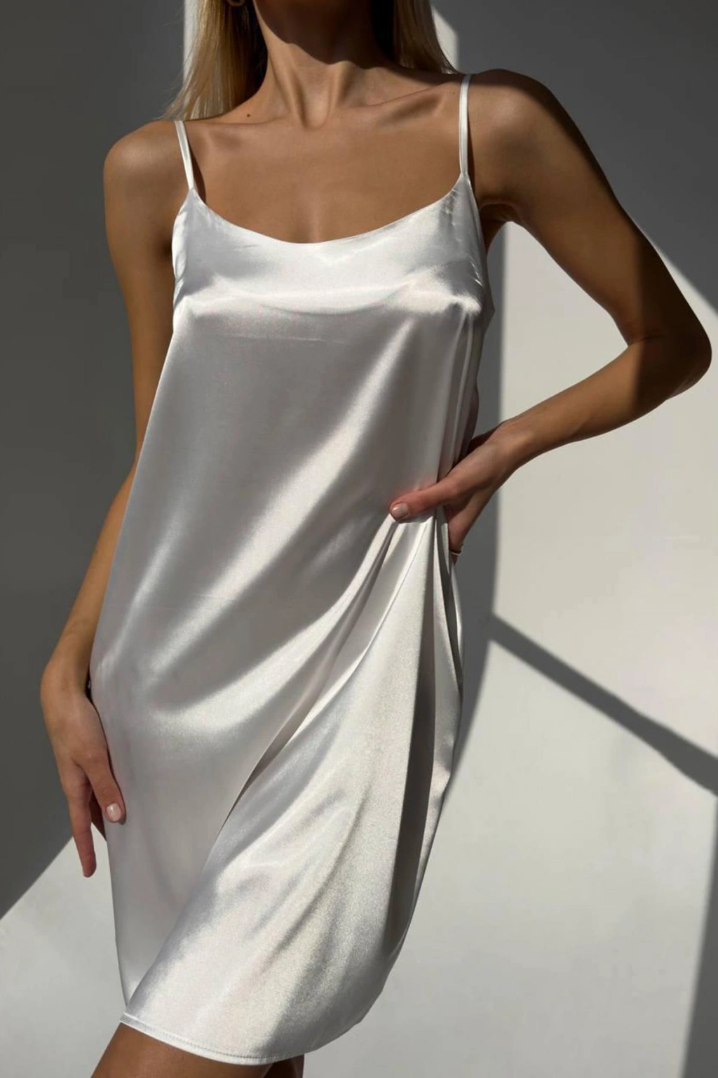 • Gecelik Tasarımı: Pudra rengi, zarafetin en yalın haliyle askılı ve akıcı bir kesim