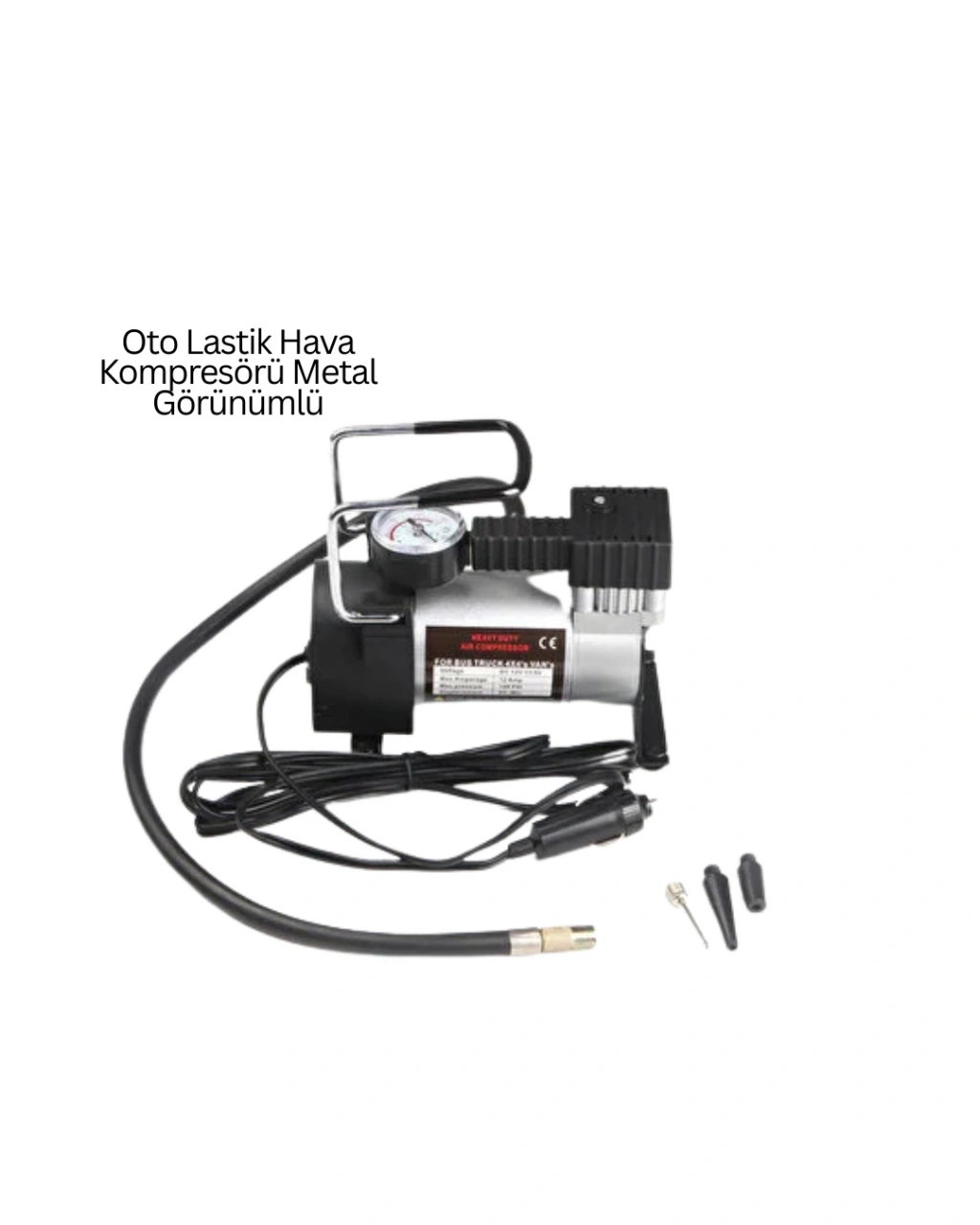 Metal gövdeli oto lastik hava kompresörü, araç sahiplerinin yol güvenliğini artırmak için tasarlanmış güçlü ve dayanıklı bir araç aksesuarıdır. DC 12V ile çalışan bu kompresör, aracın çakmak girişine bağlanarak harici güç kaynağına ihtiyaç duymadan kolayca kullanılabilir. Kompakt yapısı sayesinde araç bagajında az yer kaplar ve her an hazır bulunur.Kutu üzerinde belirtilen 140 PSI (965 kPa) maksimum basınç kapasitesi, otomobil, motosiklet, bisiklet, SUV ve 4x4 araç lastiklerini hızlı ve etkili şekilde şişirme imkânı sunar. 35 litre/dakika hava çıkışı, acil durumlarda zaman kaybetmeden müdahale edilmesini sağlar. Ürün üzerinde yer alan entegre basınç göstergesi (manometre) sayesinde lastik basıncı anlık olarak takip edilebilir ve ideal seviyede ayarlanabilir.Metal ve kaliteli ABS plastikten üretilmiş gövdesi, kompresörü darbelere, titreşime ve zorlu hava koşullarına karşı dayanıklı hale getirir. 10 Amper maksimum akım değeri, cihazın dengeli ve güvenli bir şekilde çalışmasını sağlar. 12–15 dakika kesintisiz çalışma süresine sahip olan ürünün, uzun süreli kullanımlarda ısınabileceği göz önünde bulundurularak kullanım sonrası kısa bir soğuma süresi verilmesi önerilir.Kutu içeriğinde bulunan 3 adet meme adaptörü, kompresörün yalnızca araç lastikleriyle sınırlı kalmayıp top, bisiklet ve çeşitli şişme ürünlerde de kullanılmasına olanak tanır. Dayanıklı yapısı, güçlü performansı ve pratik kullanımıyla metal gövdeli oto hava kompresörü, her sürücünün araçta bulundurması gereken güvenilir bir yardımcıdır.