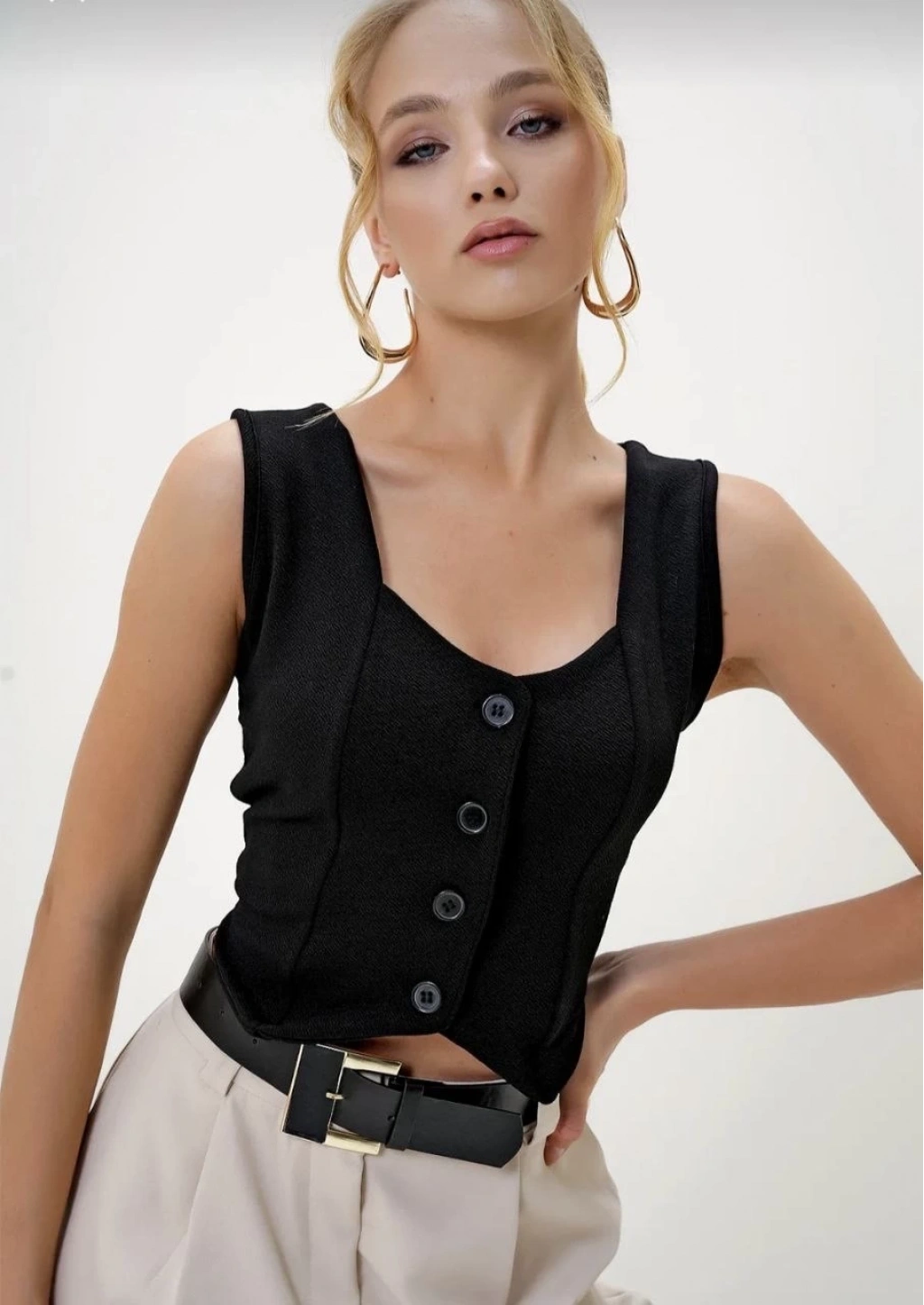 • Krep kumaş düğmeli yelek siyah s3395