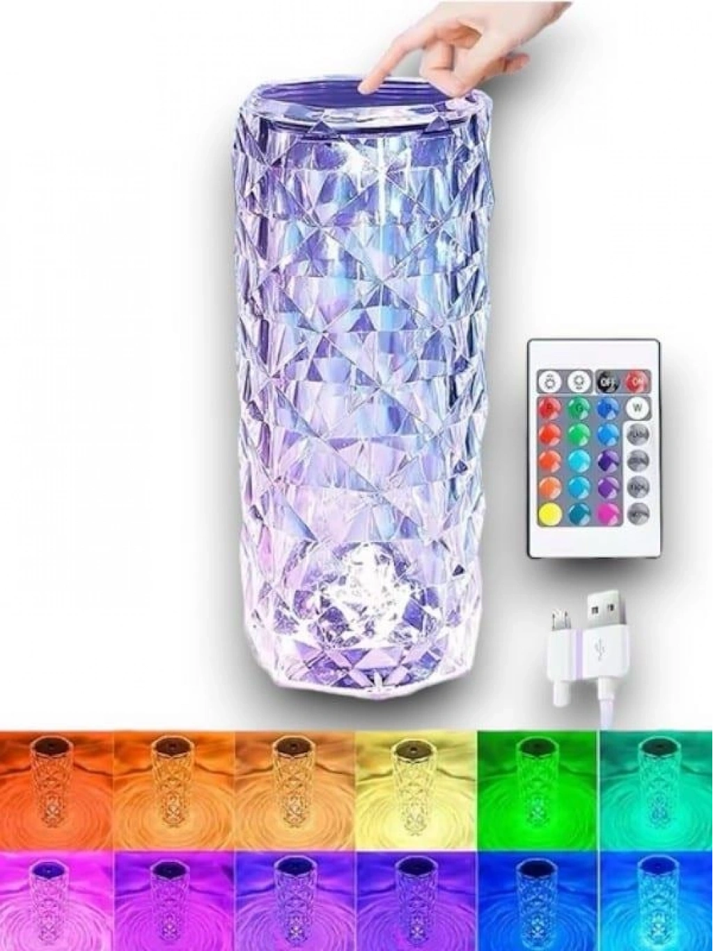 kristal masa lambası rgb renk değiştiren gece lambası 16 renk ve 4 mod dokunmatik kontrol Özellikler: Adı: Masa lambası Malzeme: Akrilik Varyasyon: Dokunmatik sensör Fiş: Usb Pil: Şarj edilebilir pil Güç: 1.5w Giriş voltajı: 5v 0.3a Ürün boyutu: D150 * h260mm Ambalaj listesi 1 * masa lambası 1 * usb kablosu 1 * Kumanda Kristal Elmas Dekoratif Masa Lambası: Benzersiz 3D kesme teknolojisi ile üretilen elmas benzeri eşkenar dörtgen şekilli kristal lamba, modern ve lüks görünümüyle parlak ve renkli ışıkları yansıtır. Oda, oturma odası, yemek odası, parti, romantik ve sıcak bir atmosfer yaratır, çocuklar, sevgililer veya arkadaşlar için doğum günü/Noel/Sevgililer Günü için romantik bir sürpriz hediye için mükemmeldir. Şarj edilebilir çalışma masası lambası: RGB çalışma masası lambası, 10.000 şarj ve deşarj işlemi için kullanılabilecek yüksek kapasiteli dahili 2000 mAh pile sahiptir. Yeni geliştirilmiş entegre USB şarj arayüzü tasarımı size güvenli ve sorunsuz şarj sağlar (USB şarj kablosu teslimat kapsamına dahildir), şarj edildikten sonra 3 saat kullanılabilir ve tüm gece boyunca tek bir şarjla eşlik edebilir 16 RGB renk: Elmas LED lamba, 3 renk RGB kırmızı, yeşil ve mavi ve 16 dinamik renge sahiptir (sıcak ışık + sıcak beyaz ışık + sarı ışık + mavi ışık + kırmızı ışık vs.), 4 dinamik mod (flaş/stroboskop/açma/kapama/pürüzsüz), 6 kademeli parlaklık ayarı, en sevdiğiniz rengi ve tercih ettiğiniz ışık modunu zevkinize ve ruh halinize göre seçebilirsiniz. romantik bir atmosfer için seçin sağlar. Uzaktan kumandalı ve dokunmatik kumandalı masa lambası: Elmas masa lambası dokunmaya karşı hassastır, ele dokunarak hemen kısmayı değiştirebilir, kapatmak için üç saniye boyunca uzun basın uzaktan kumanda 24 tuşa sahiptir (kullanım kılavuzu ile) ve dokunmatik ekran ve uzaktan kumanda gelişmiş bir çip kullanır, tepki hızı hassastır, bağlantı sağlamdır ve her şey elinizdedir. Yüksek ışık geçirgenliğine sahip akrilik masa lambası: Bel şeklindeki küçük masa lambası, güvenli ve yalıtımlı, zarar görmesi kolay olmayan ve ışık geçirgenliği %95'ten fazla olan akrilik malzemeden yapılmıştır. RGB ışık, elmas kristali ile zemine yansıtılır ve harika bir LED ışık kaynağı gösterir. Şık görünüm, sizin için harika bir ışık ve gölge şenliği yaratmak için parlak ışıklarla kombine edilmiştir.