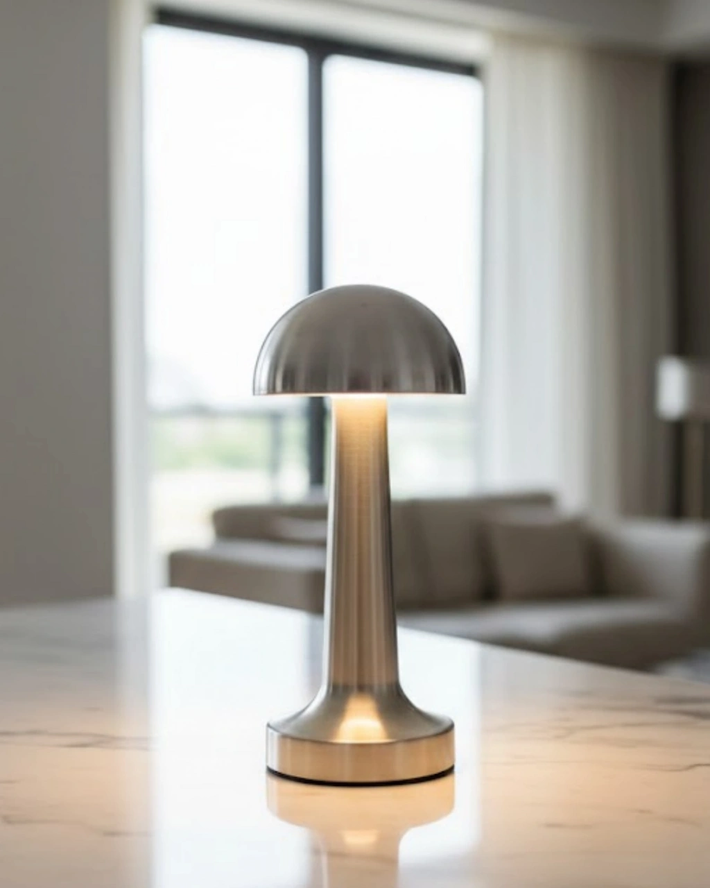 Krom Mantar Masa Lambası Dokunmatik 3 Renk LED Şarjlı Taşınabilir Gece Lambası