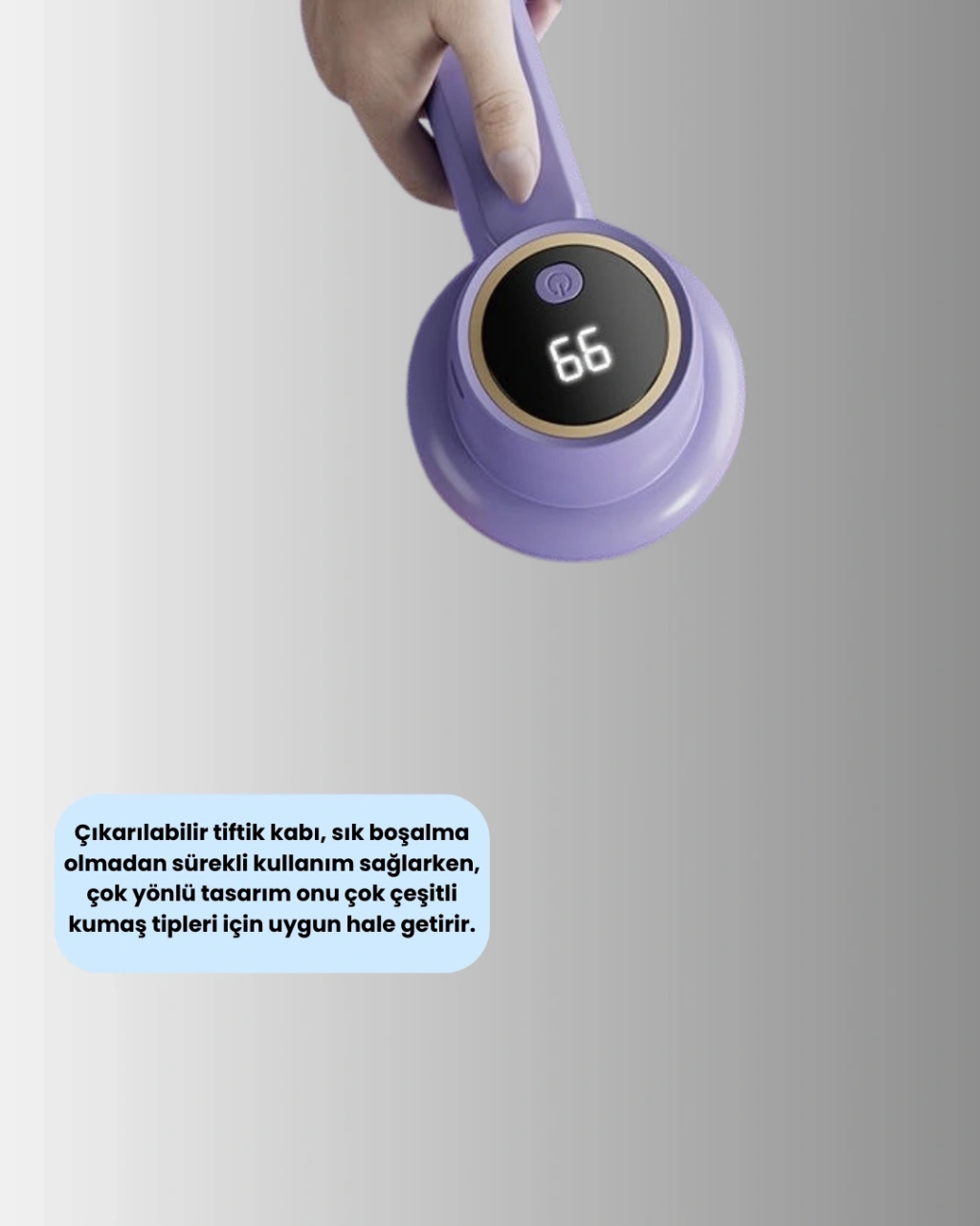 Kumaş bakım makinesi, tüylenme ve pürüzlenme problemlerini kısa sürede gidermeye yardımcı olur. Büyük başlık yapısı, hızlı ve etkili temizlik sağlar. Kablosuz kullanım avantajı, ürünü pratik hale getirir.Düzenli kullanımda giysilerin ve ev tekstillerinin daha bakımlı görünmesine katkı sağlar. Dayanıklı gövdesi ile güvenli kullanım sunar.
