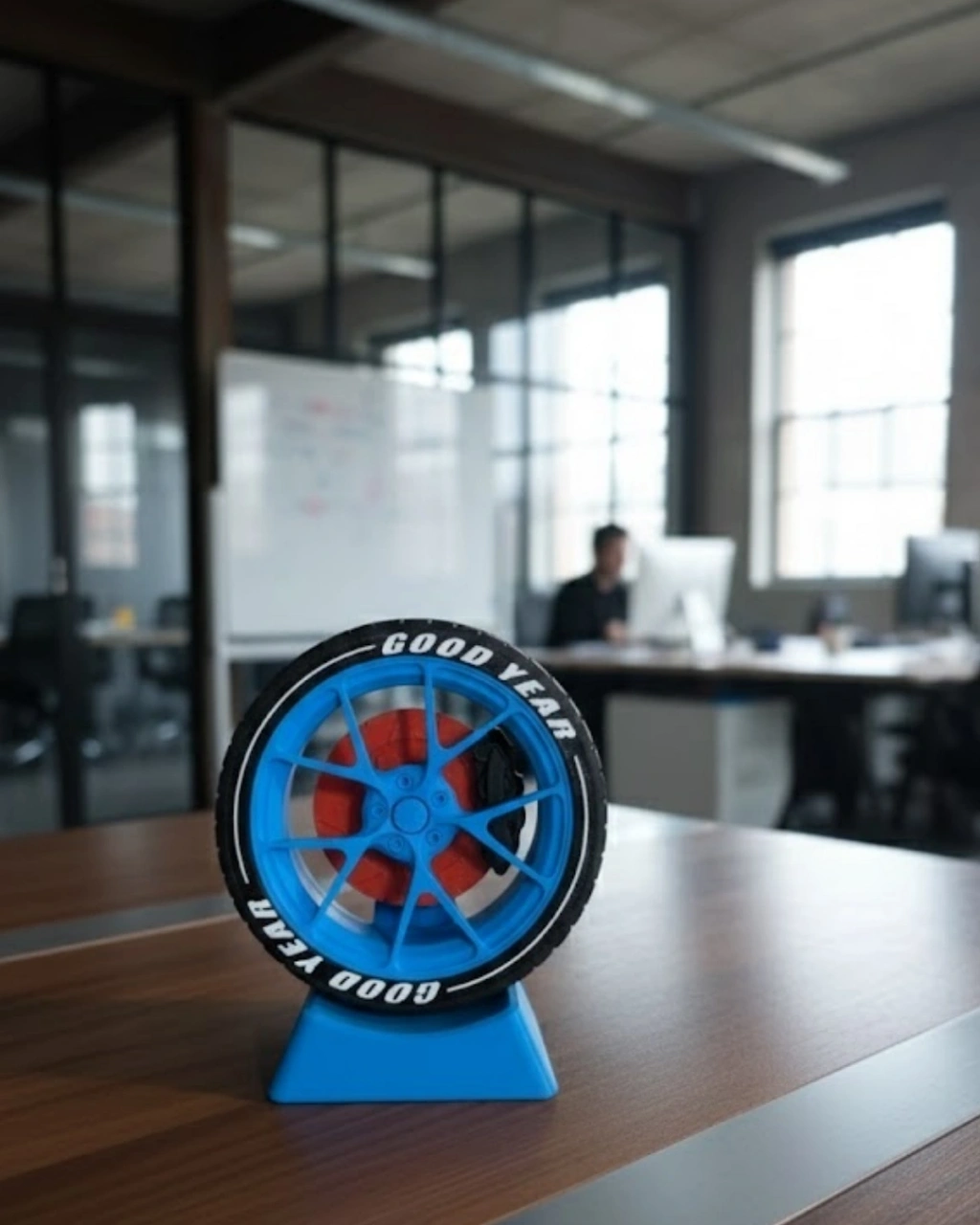 Dekoratif jant modeli, ofis masası ve çalışma alanları için tasarlanmış şık bir süs objesidir. Otomobil temalı dekor sevenler için hem estetik hem de anlamlı bir detay sunar. Masa üzerinde tek başına sergilendiğinde bile güçlü bir görsel etki yaratır. Ofiste, home office ortamında veya hediye olarak tercih edilebilir. Doğum günü, yeni iş hediyesi veya ofis açılışı için farklı ve özgün bir seçenektir.