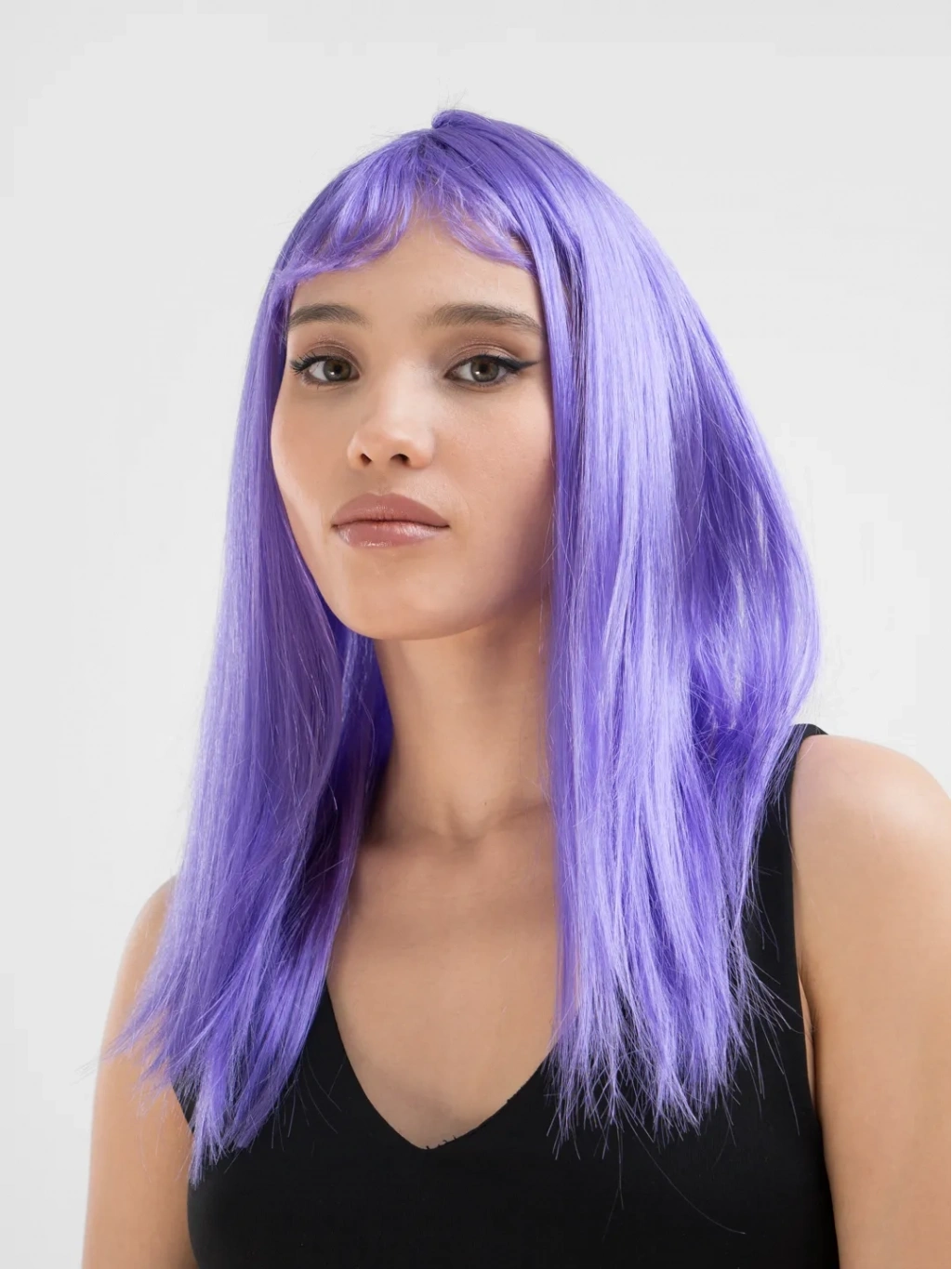 Lila Renk Uzun Düz Parti Peruğu