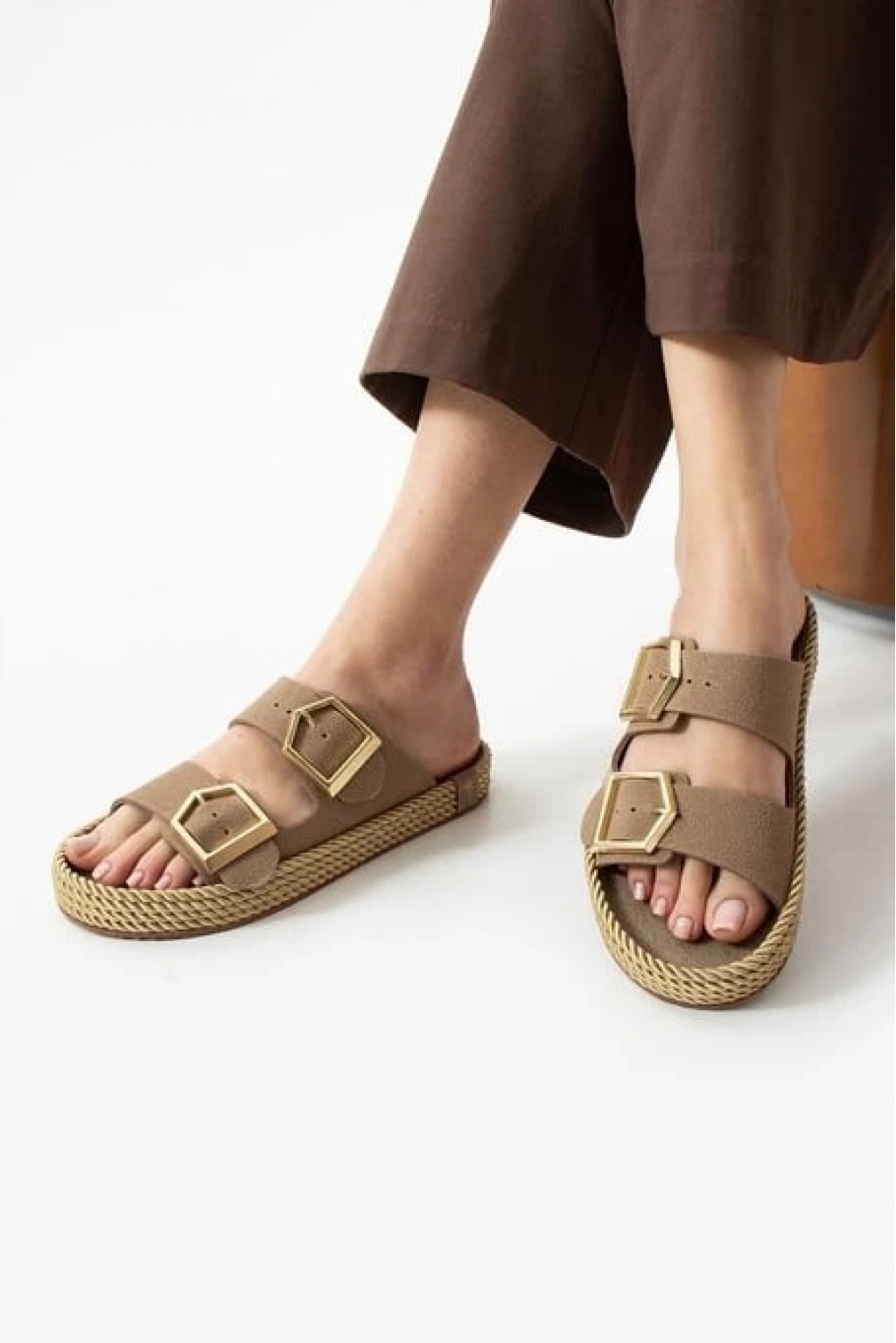 Loera Vizon Nubuk Çift Tokalı Terlik