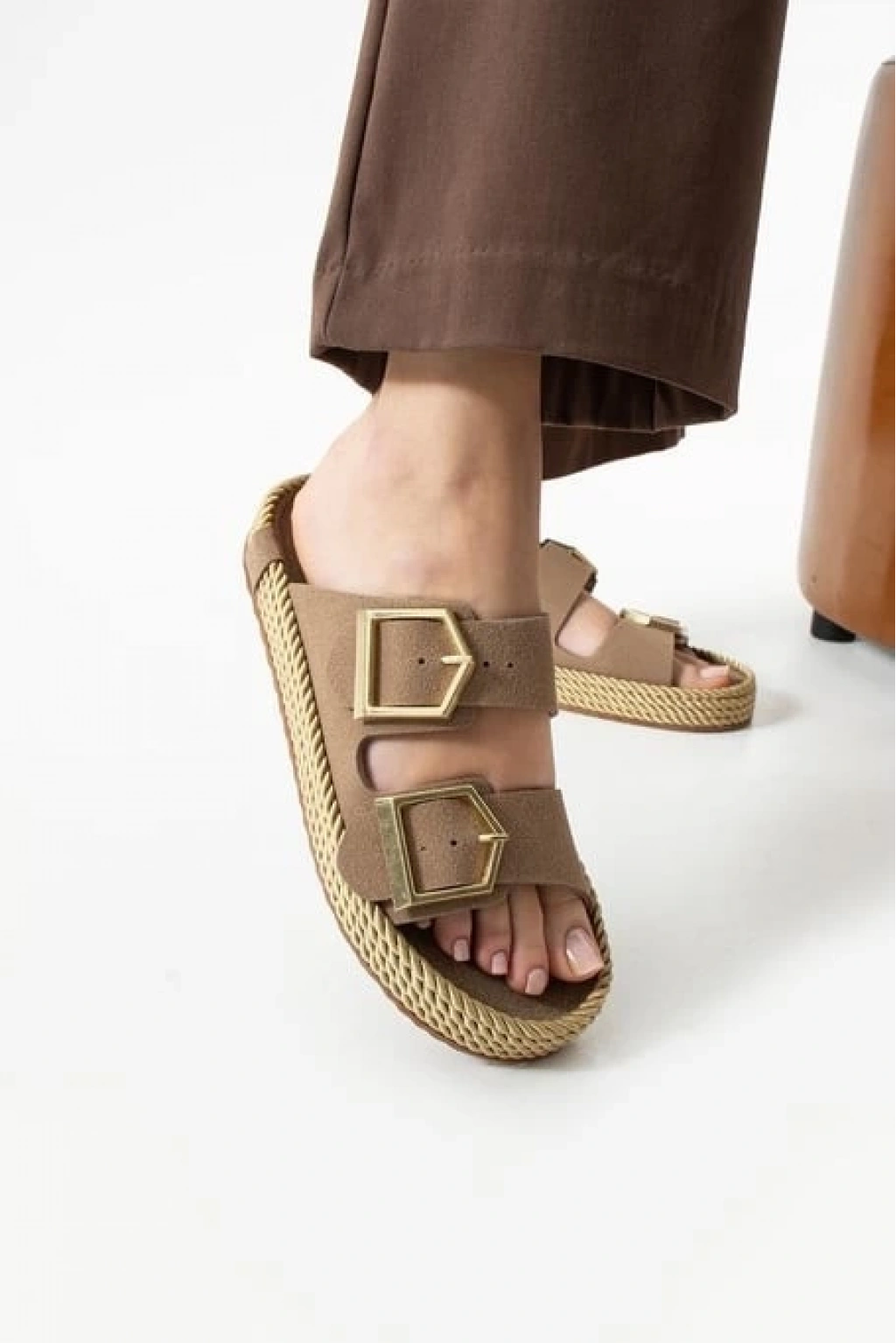 • Loera Vizon Nubuk Çift Tokalı Terlik