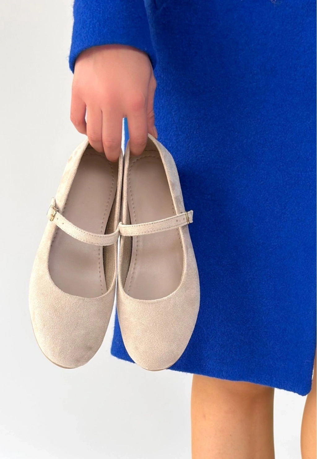 • Lossa Bej Süet Kemerli Babet Ayakkabı