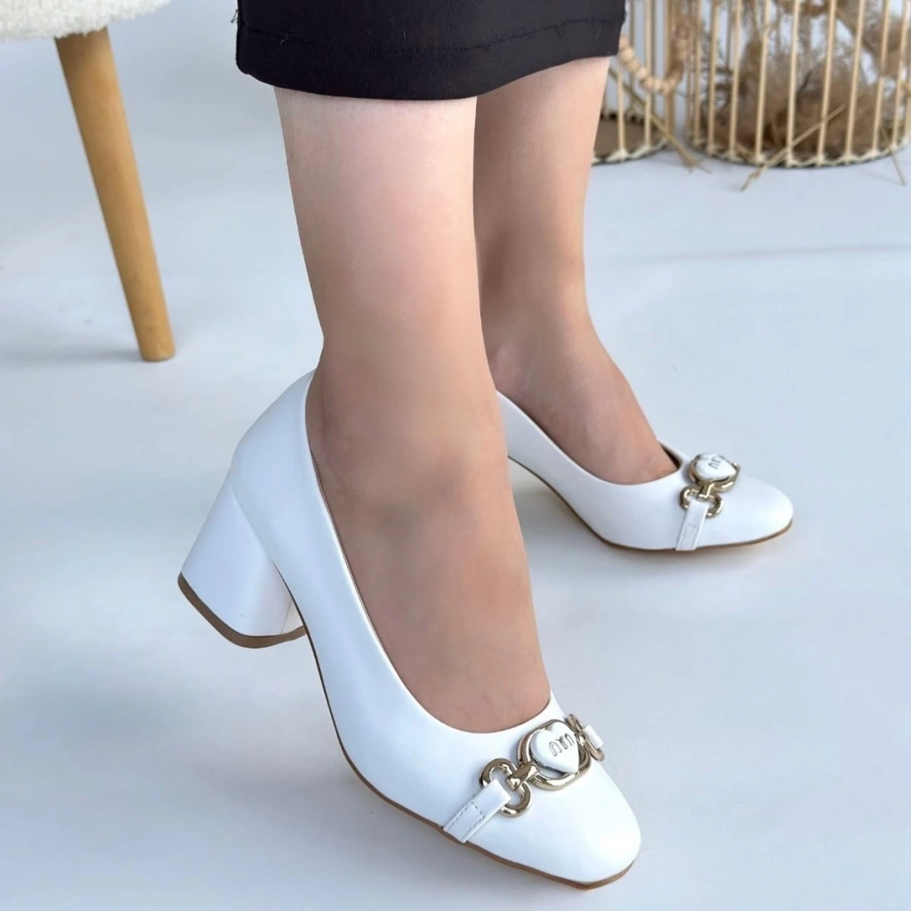 • Lucky Beyaz Cilt Topuklu Ayakkabı