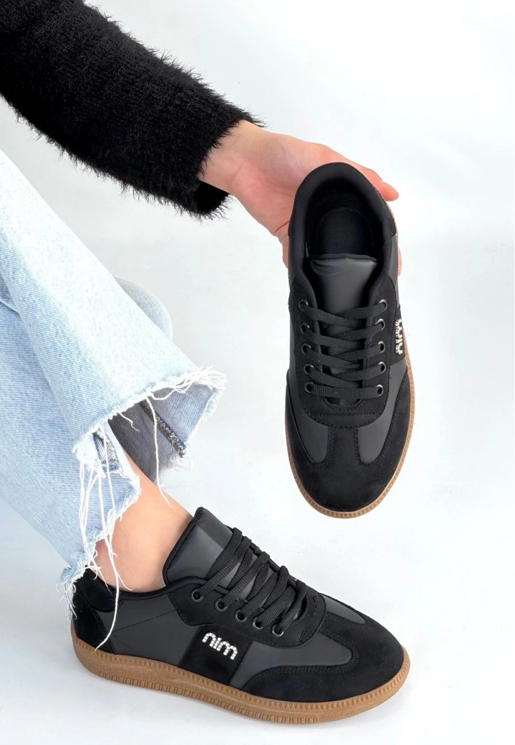 Lunga Siyah Cilt Bağcıklı Spor Ayakkabı