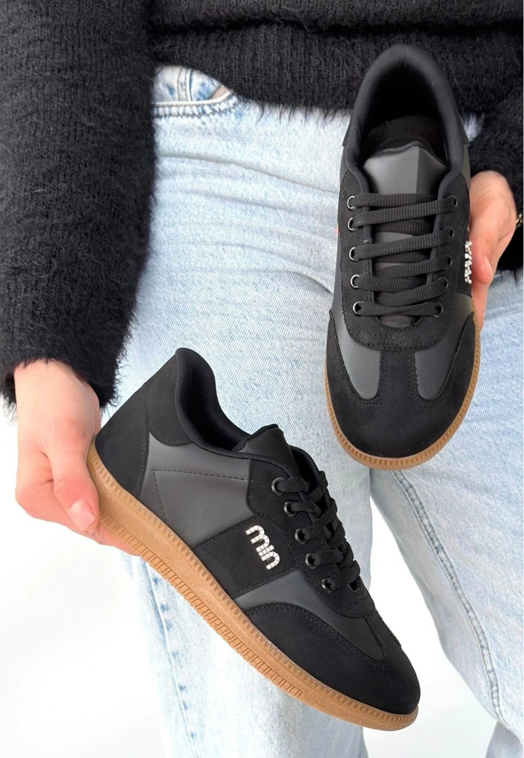 • Lunga Siyah Cilt Bağcıklı Spor Ayakkabı