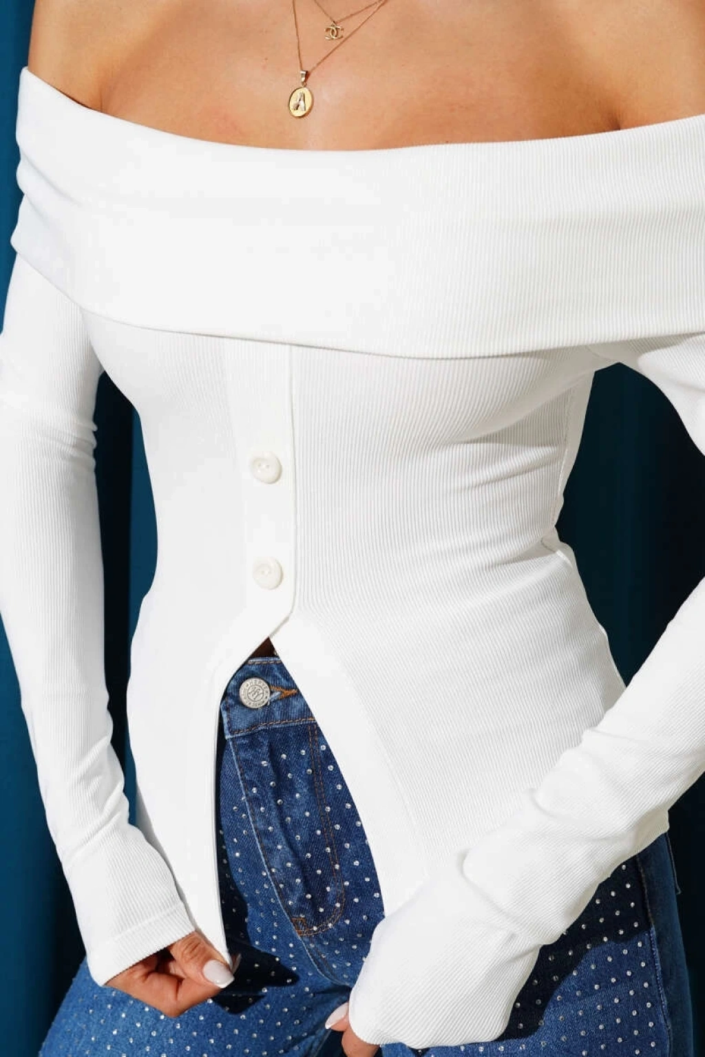 • Madonna Yaka Düğmeli Bluz Beyaz t4329