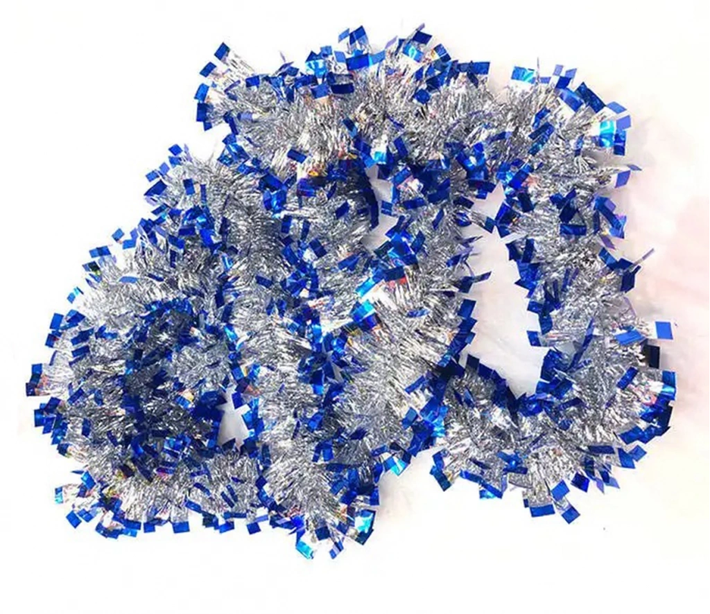 Mavi Gümüş Renk 4 cm Genişlik Garland Çift Renk Sim Süs 180 cm