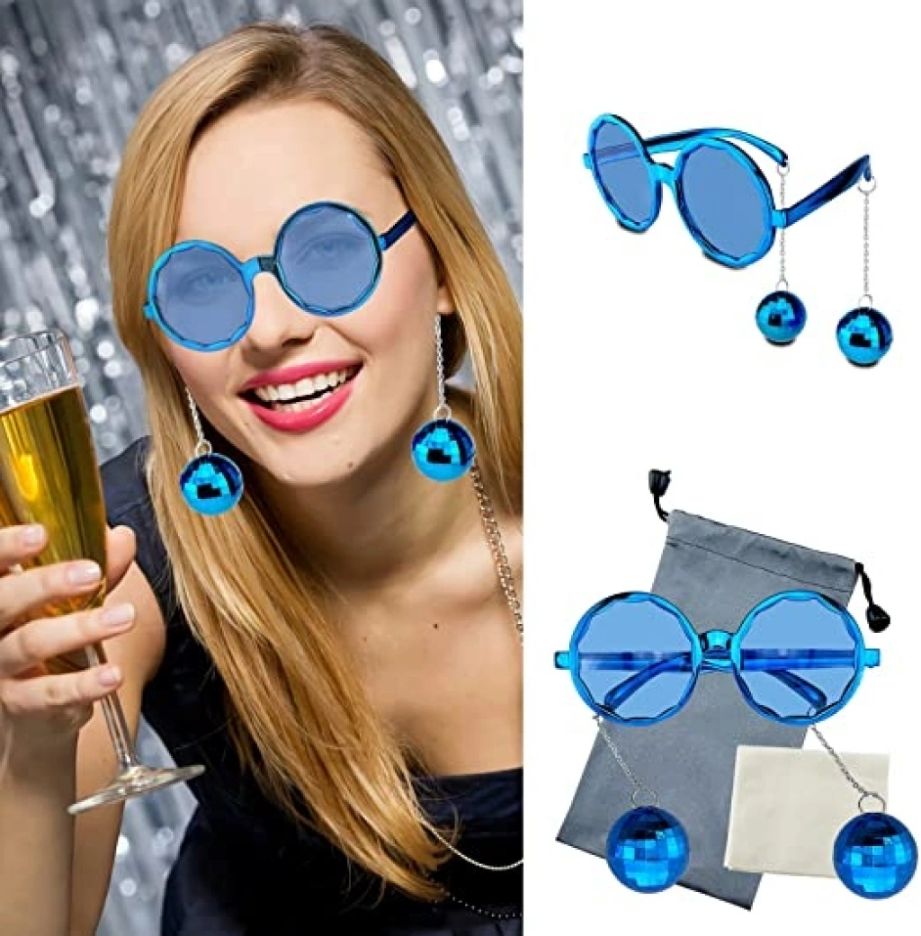 Mavi Renk Disko Toplu Küpeli Parlak Yılbaşı Parti Gözlüğü