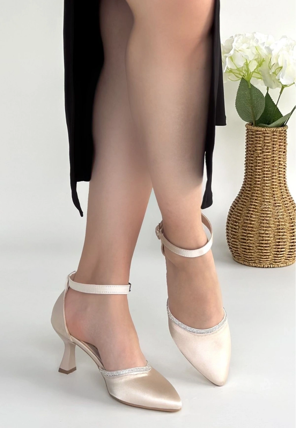 Mejja Bej Saten Topuklu Ayakkabı