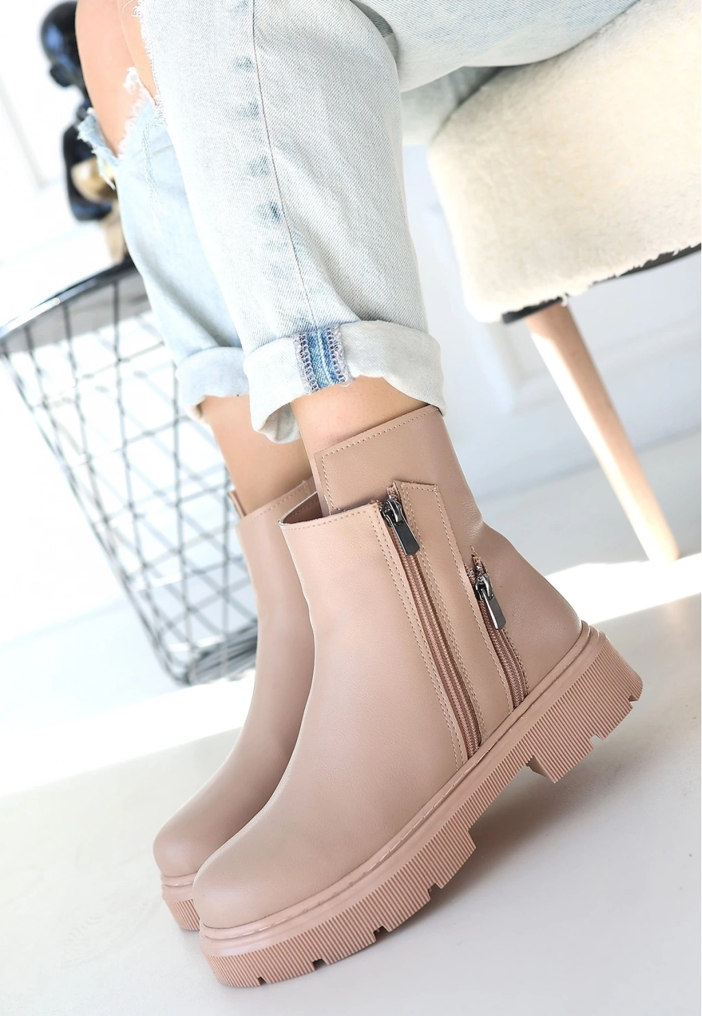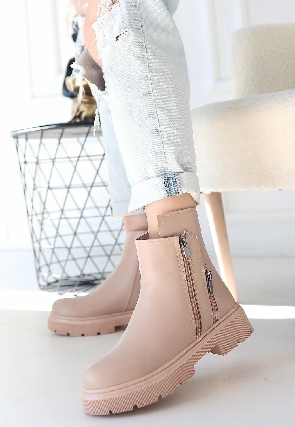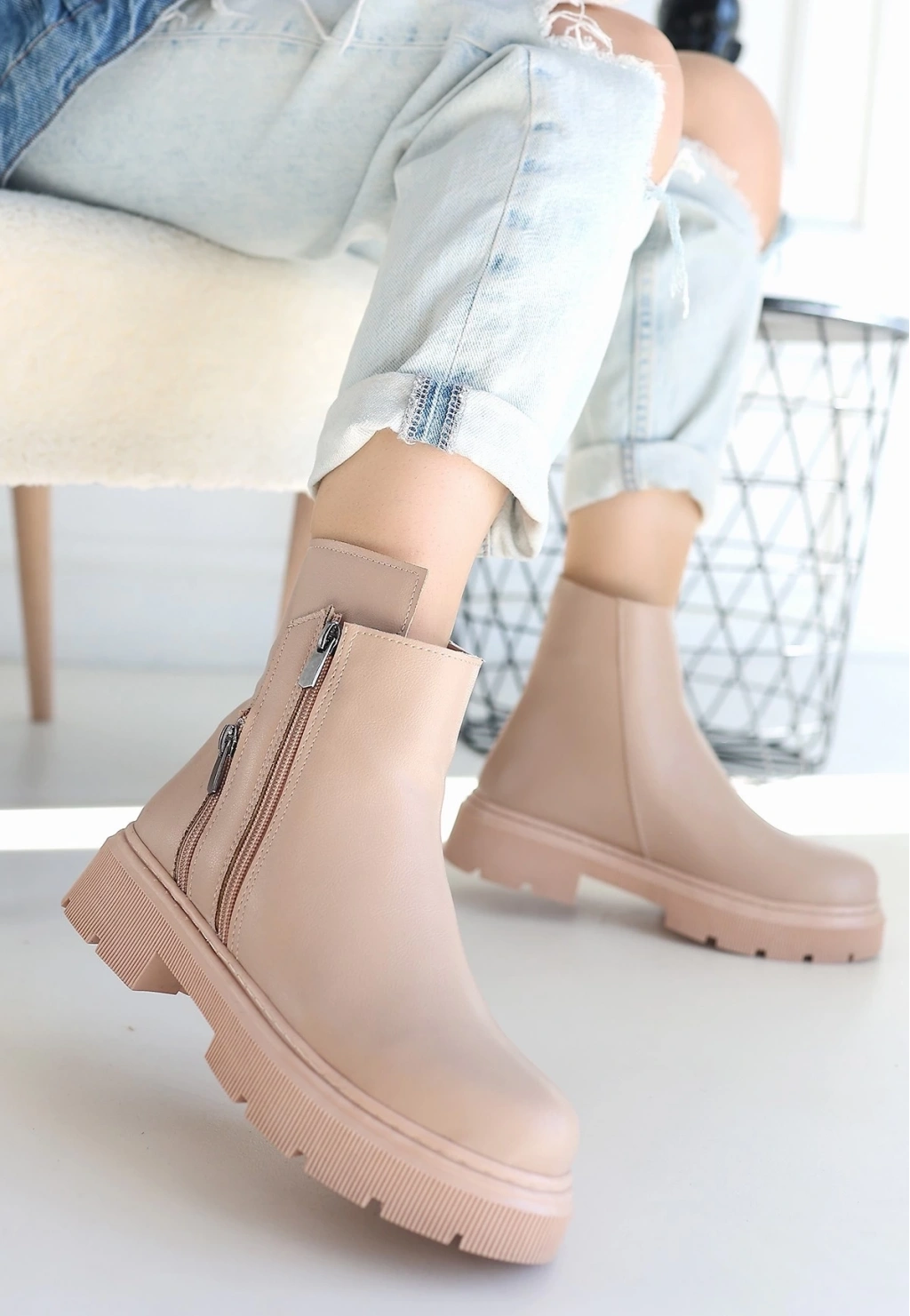 • Menta Nude Cilt Fermuar Aksesuarlı Bot