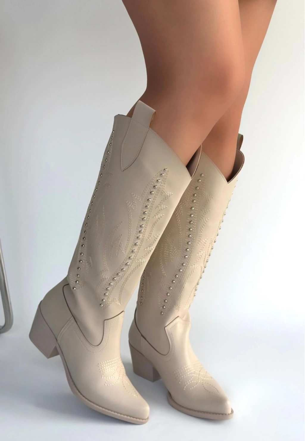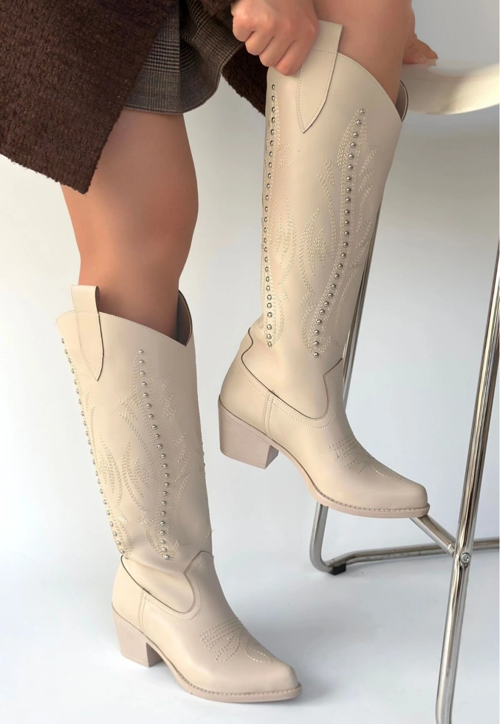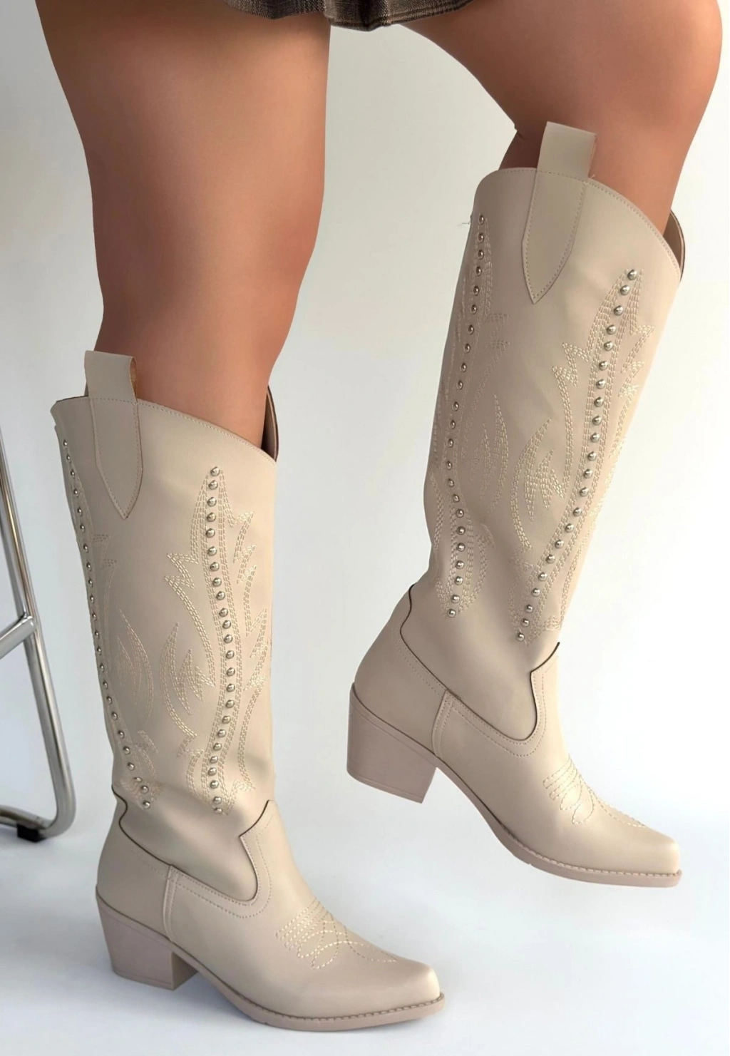 • Meof Bej Cilt Topuklu Çizme