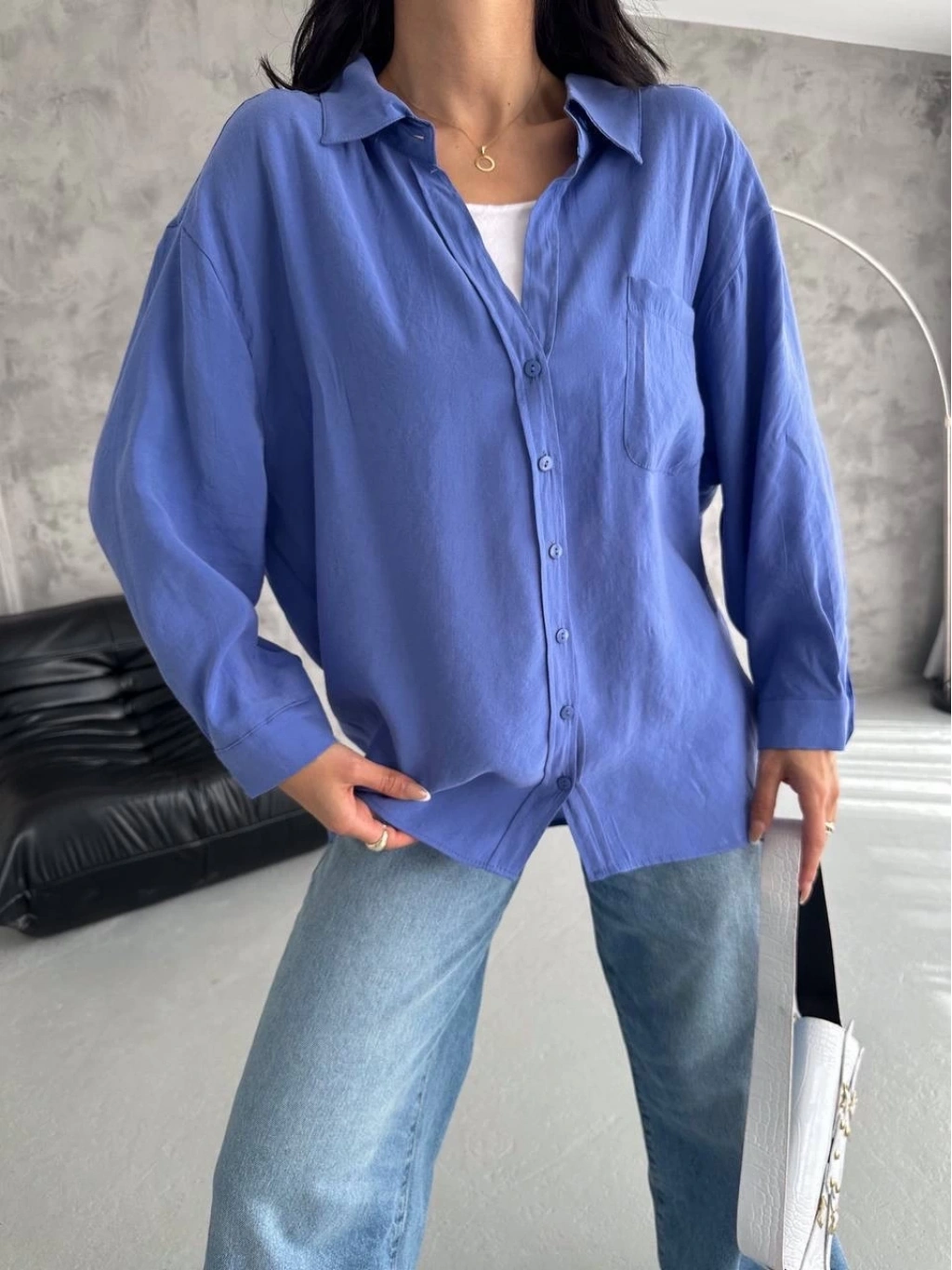 Modal oversize cepli gömlek