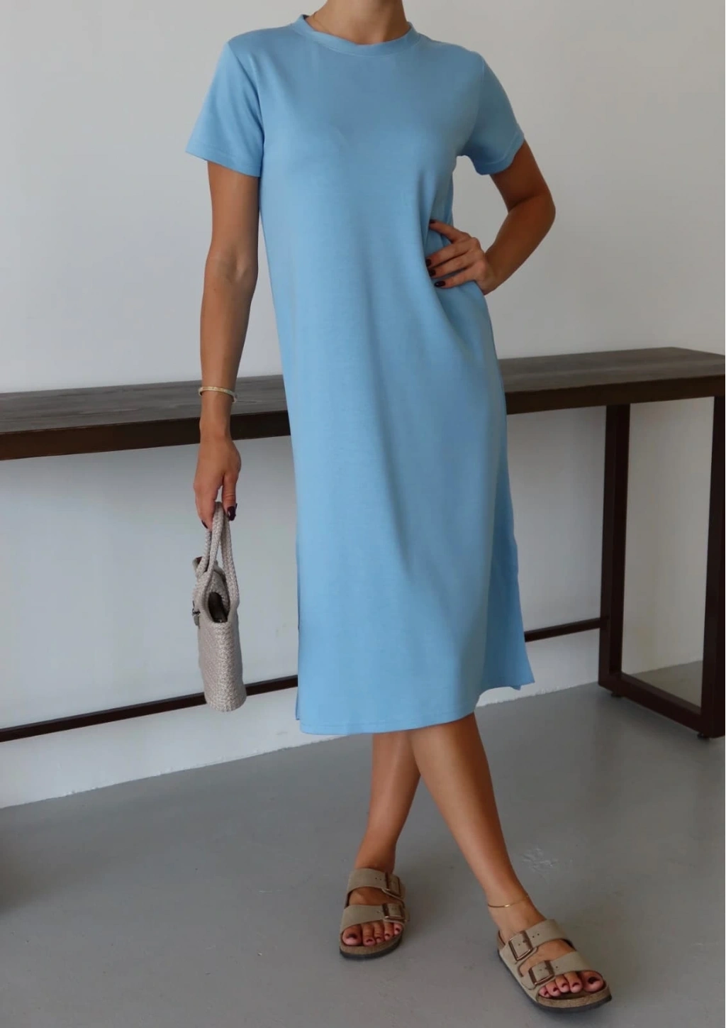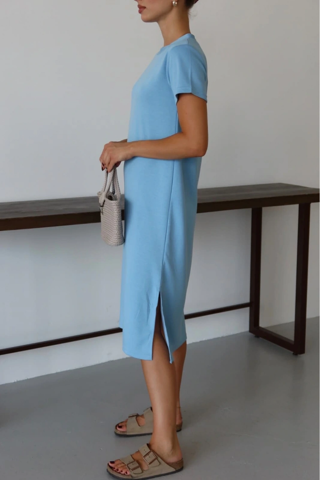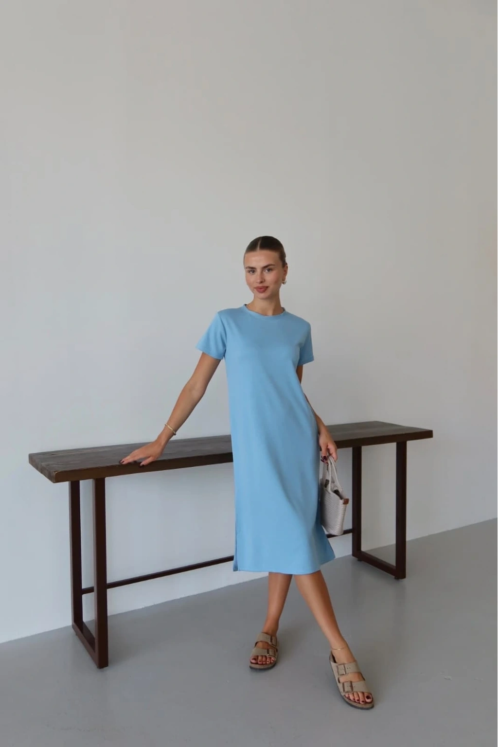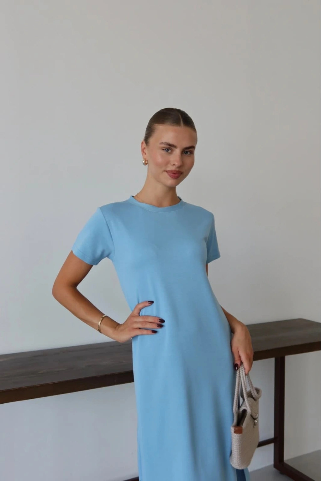 Modal Yırtmaçlı Elbise Mavi PT, şıklık ve rahatlığı bir arada sunan bir seçenektir.