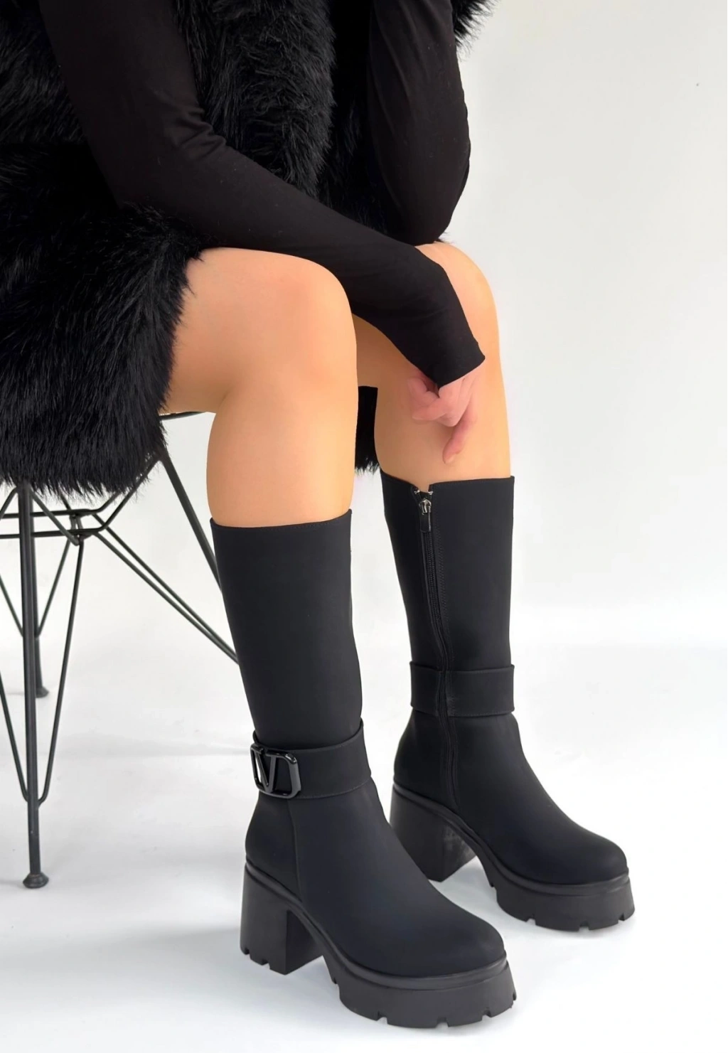 Detay: Topuklu Yandan Fermuarlı Çizme