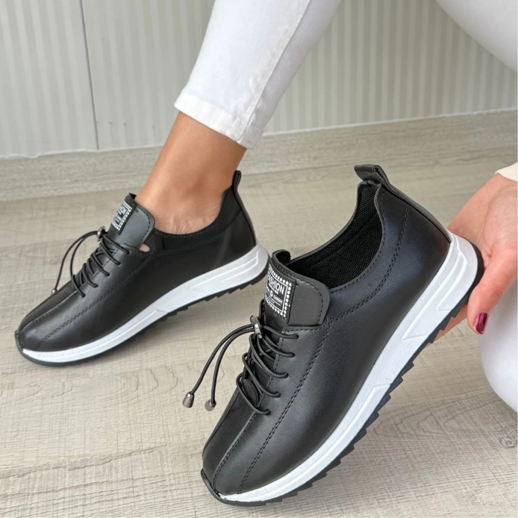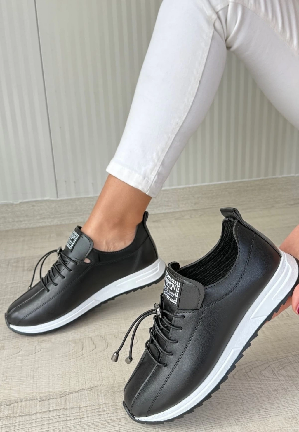 • Monya Siyah Cilt Bağcıklı Spor Ayakkabı