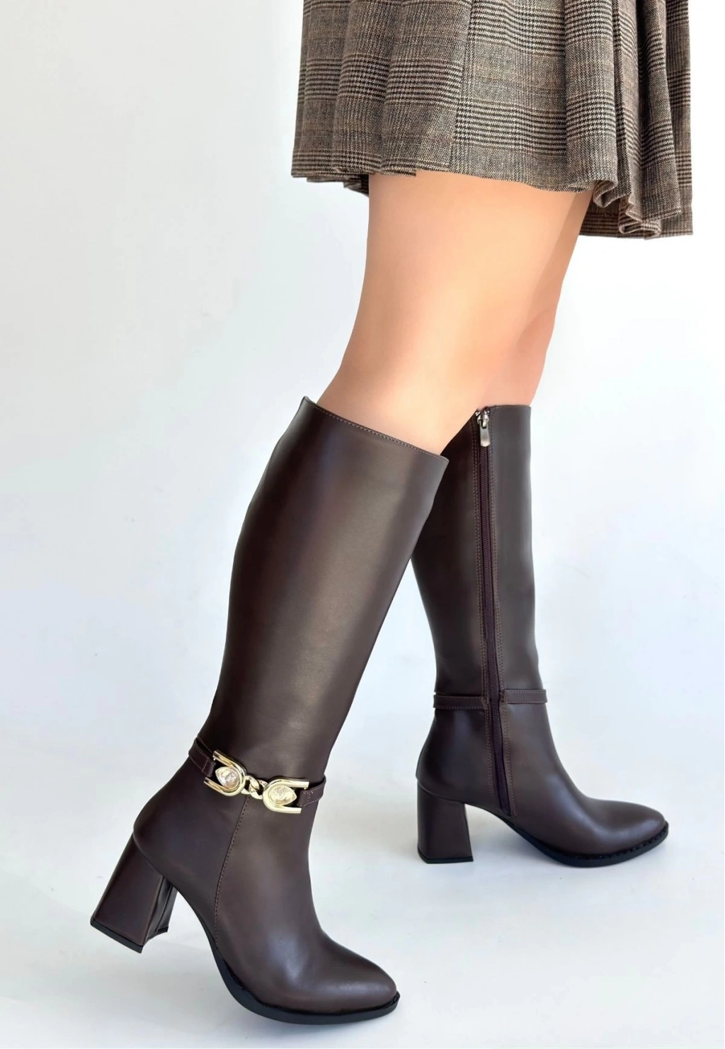 Mooni Kahverengi Cilt Topuklu Çizme