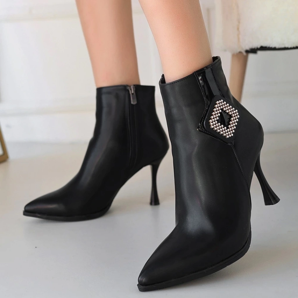 • Moose Siyah Cilt Topuklu Bot