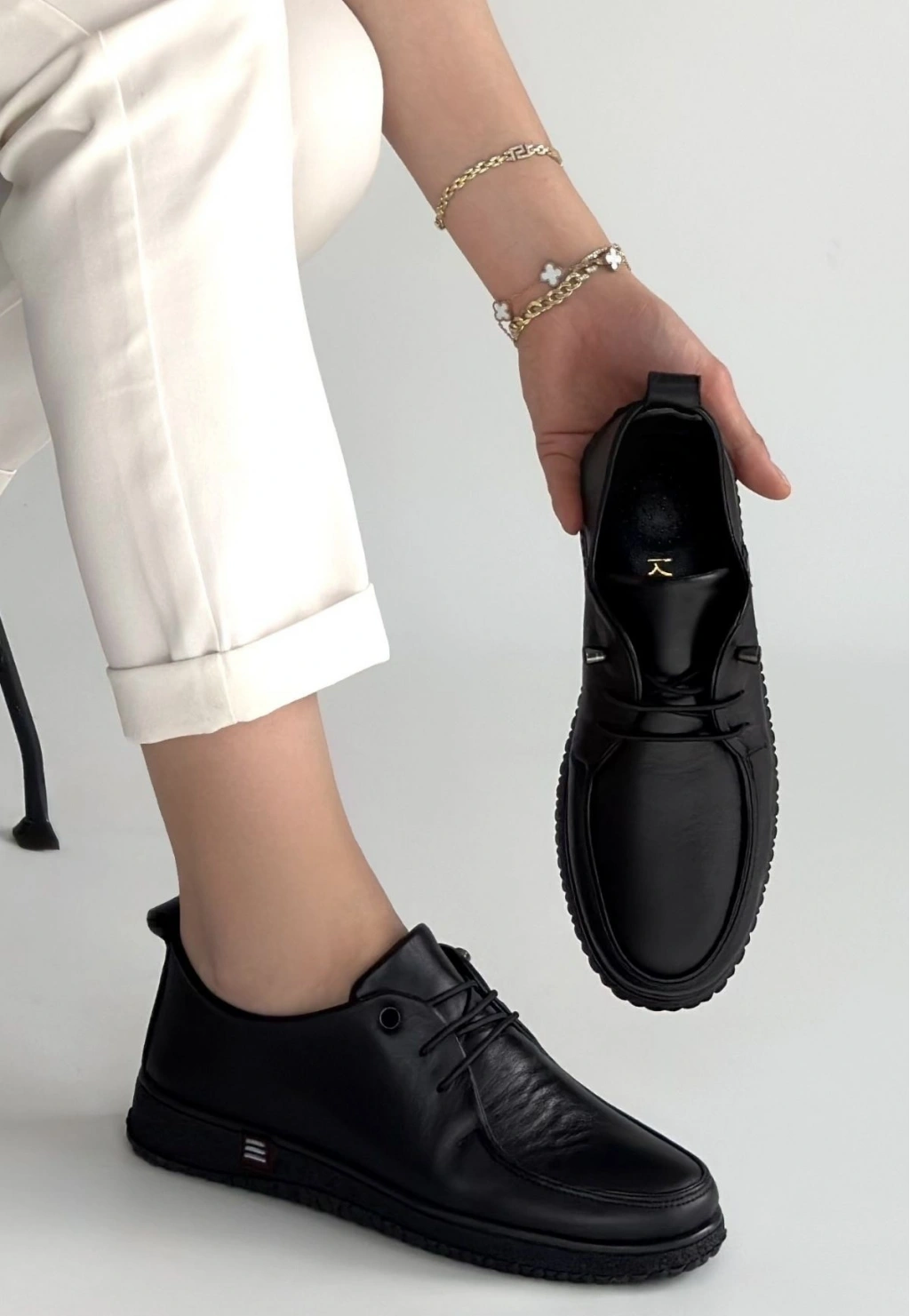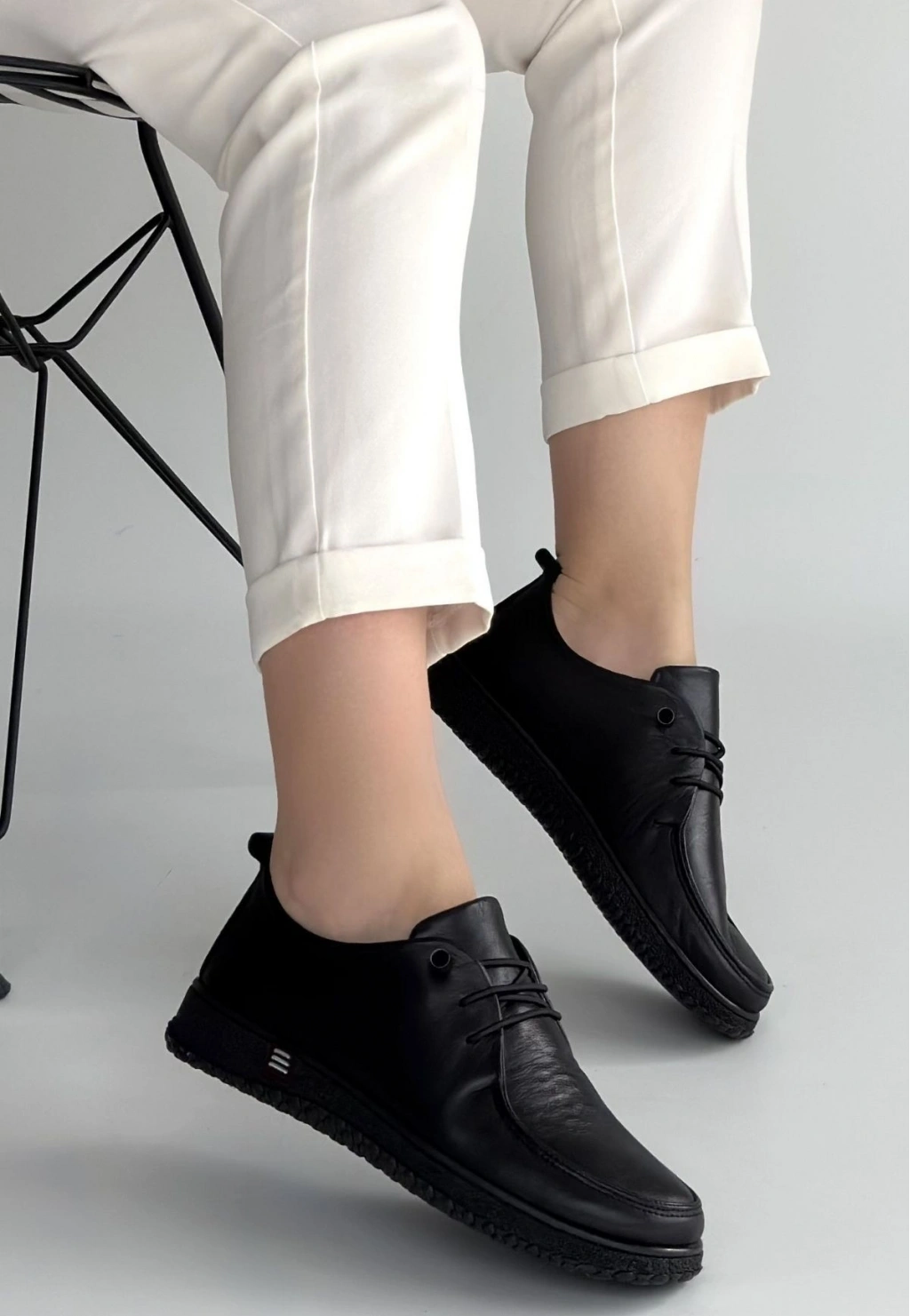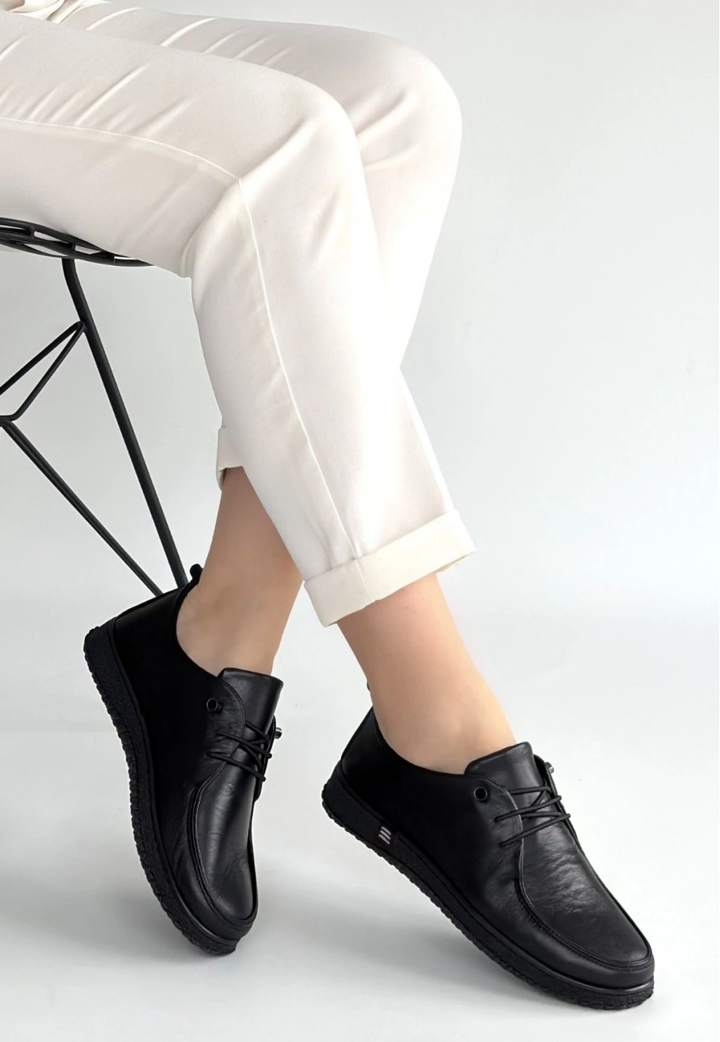 • Mopin Siyah Deri Bağcıklı Spor Ayakkabı