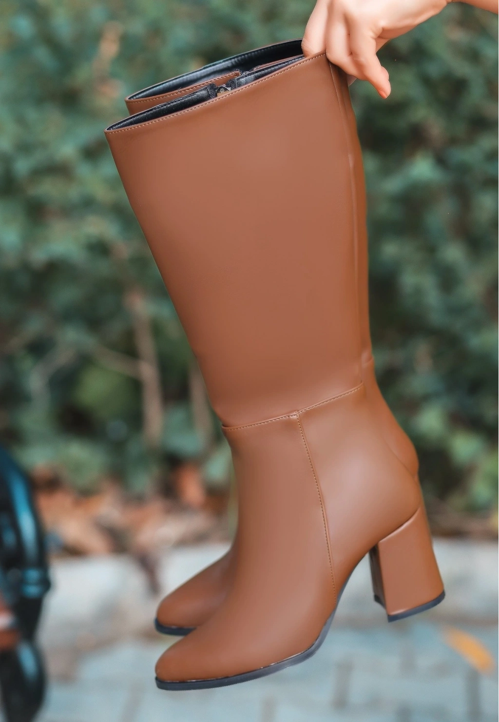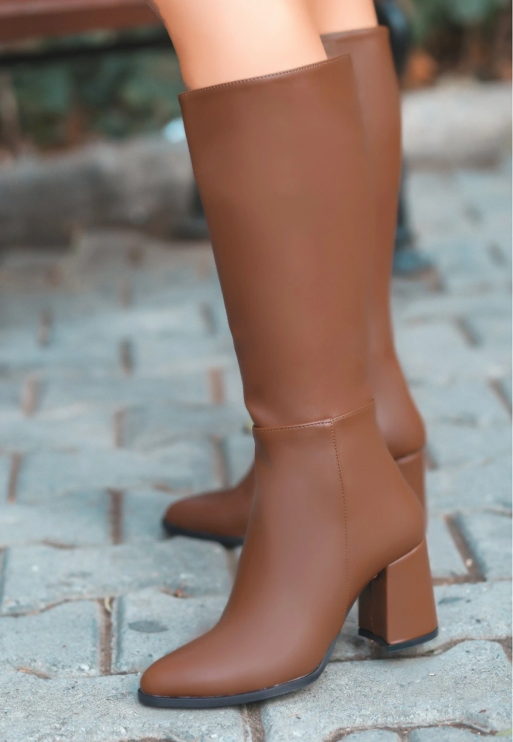 Detay : Topuklu Yandan Fermuarlı Diz Altı Çizme