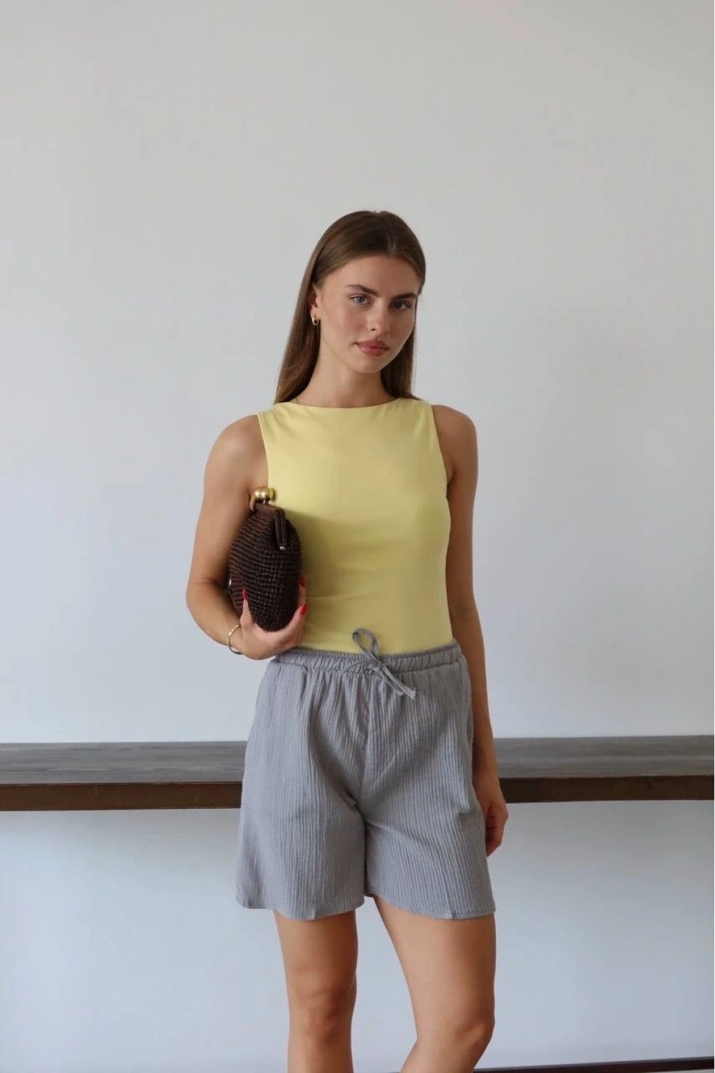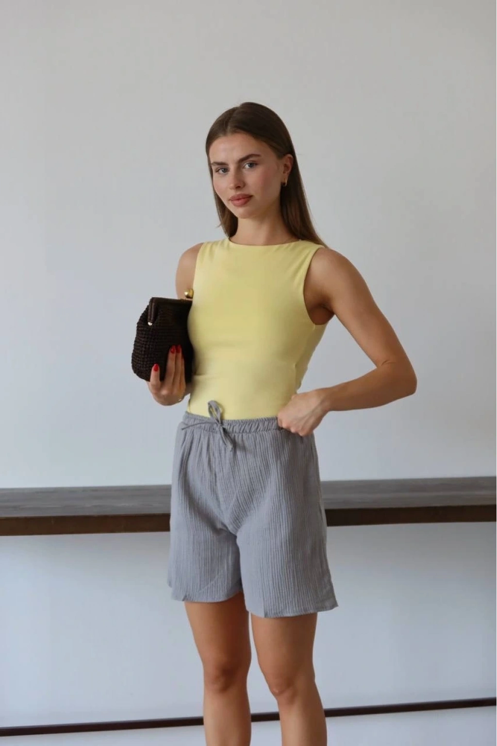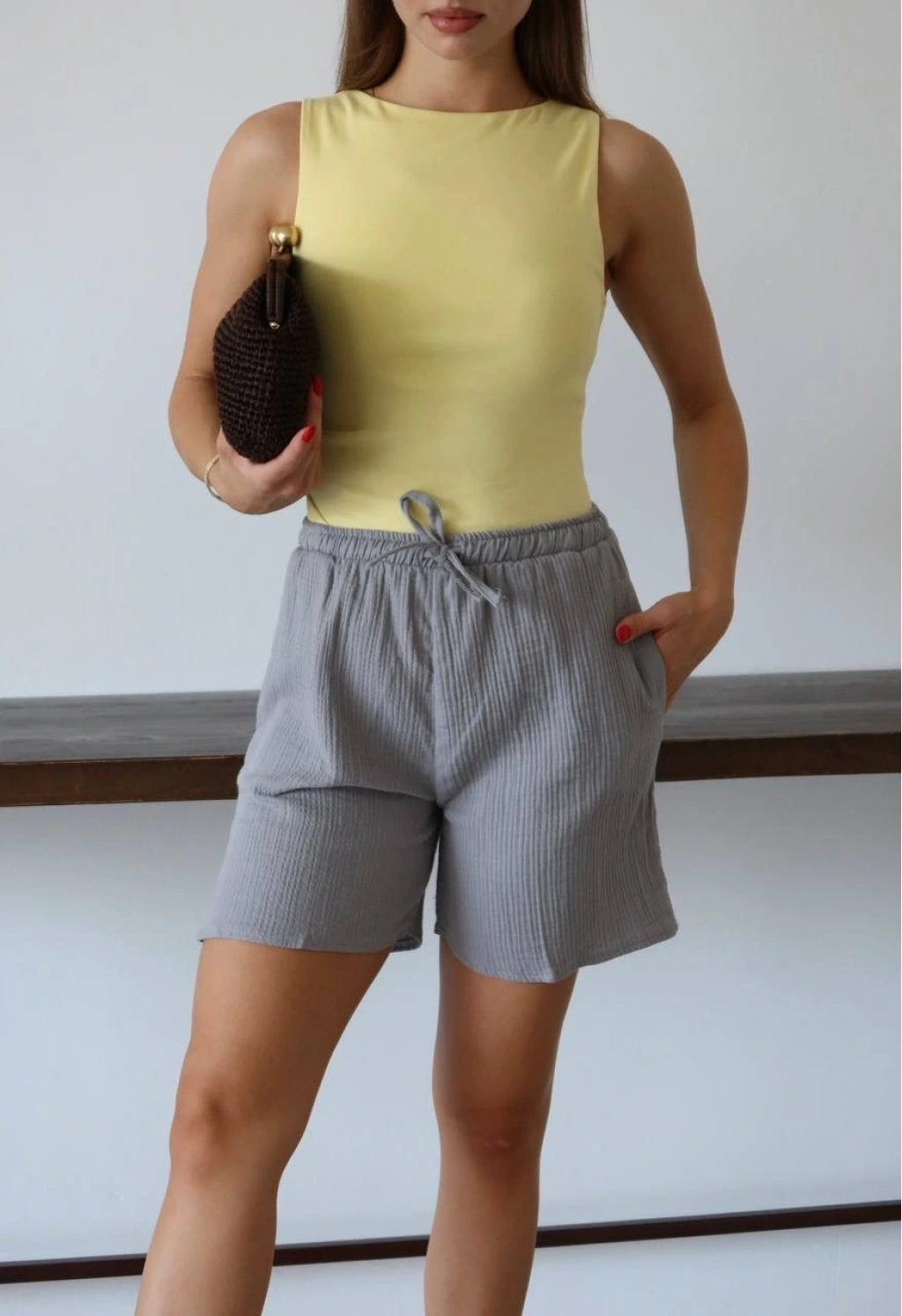 Modayı takip eden ve rahatlıktan ödün vermeyen kadınların tercihi Müslin Kumaş Şort Bağcıklı Gri PT ile stilinizi tamamlayın!