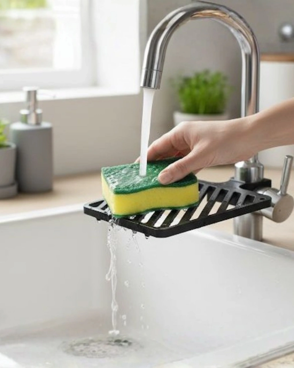 musluk organizeri, mutfakta hem hijyen hem de kullanım kolaylığı arayanlar için tasarlanmış fonksiyonel bir çözümdür. Süngerlerin sürekli ıslak kalması, bakteri oluşumu ve kötü koku gibi sorunlara yol açabilir. Bu ürün, süngerinizi musluğun gövdesine entegre platform üzerinde konumlandırarak bu sorunları ortadan kaldırmayı amaçlar.Organizerin en önemli özelliği, alt kısmında bulunan drenaj kanallarıdır. Sünger yıkandıktan sonra üzerinde kalan su, bu kanallar sayesinde doğrudan lavaboya akar. Böylece sünger daha hızlı kurur ve hijyenik kalır. Tezgâhla temas etmediği için hem mutfak yüzeyiniz temiz kalır hem de süngeriniz daha sağlıklı bir şekilde muhafaza edilir.Musluğa monte ve birleşik yapısı sayesinde ürün sabit durur, sallanmaz ve kullanım sırasında güven verir. Ekstra montaj, yapıştırıcı veya askı gerektirmez. Mutfakta sade ve düzenli bir görünüm elde etmek isteyenler için ideal bir çözümdür. Özellikle minimal mutfak tasarımlarında alan kazanımı sağlar.Şık ve modern tasarımıyla mutfak dekorasyonunu tamamlayan bir aksesuardır. Günlük yoğun kullanıma uygun dayanıklı yapısı sayesinde uzun ömürlüdür. Sünger değiştirme ve temizleme işlemleri son derece pratiktir.Bu musluk organizeri, mutfakta küçük ama etkili bir düzen sağlayarak günlük bulaşık ve temizlik işlerinizi daha konforlu hale getirir. Hijyen, düzen ve kullanım kolaylığını bir arada sunan pratik bir mutfak yardımcısıdır.