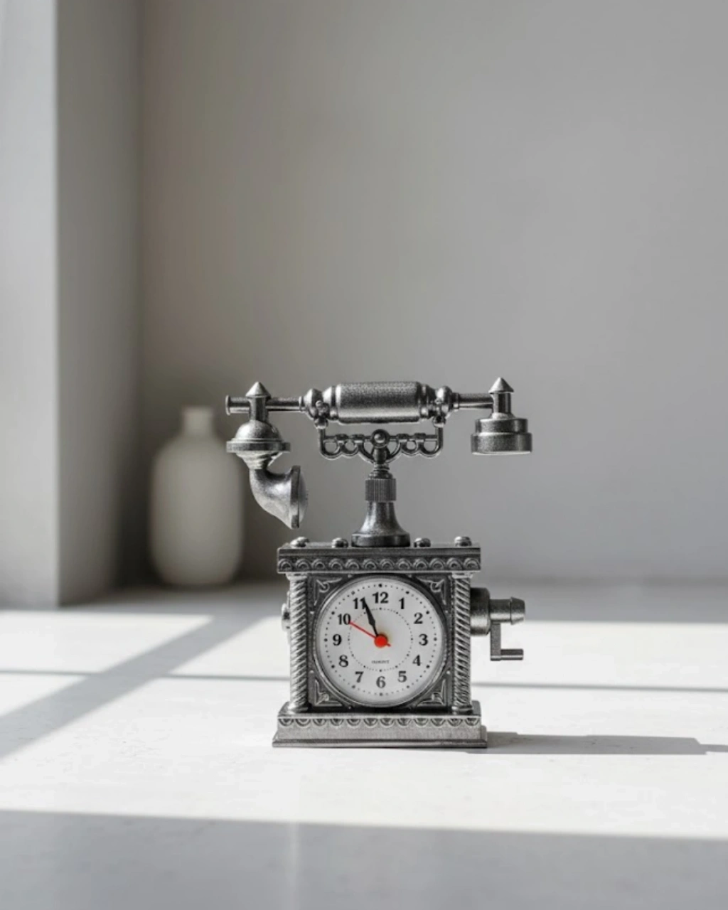 N8808B TELEFON ŞEKLİNDE ÇALAR SAAT GÜMÜŞ