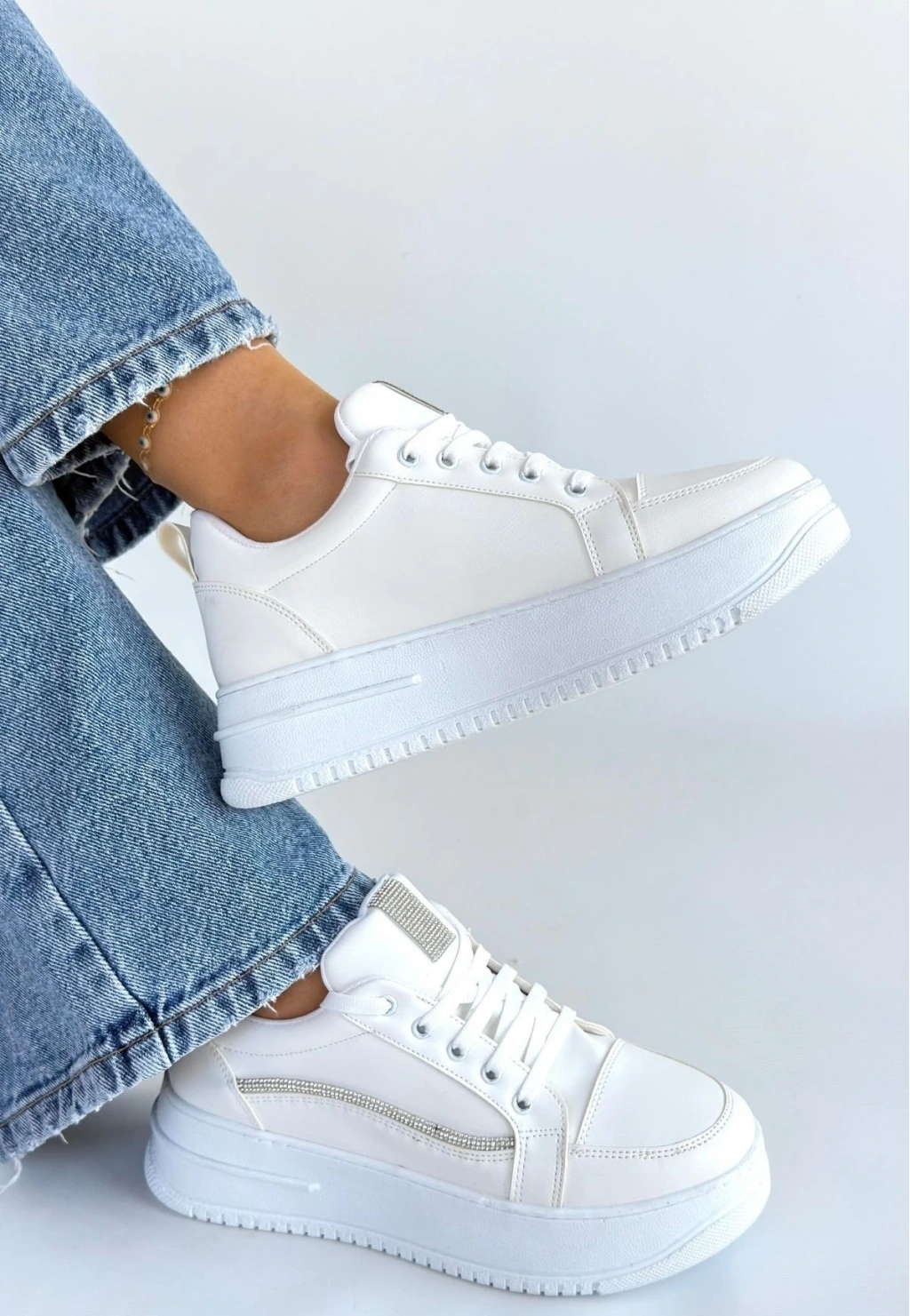 • Natte Beyaz Cilt Bağcıklı Spor Ayakkabı